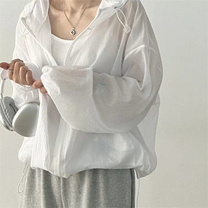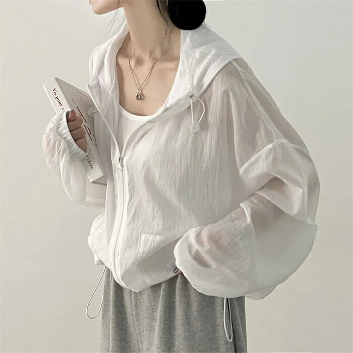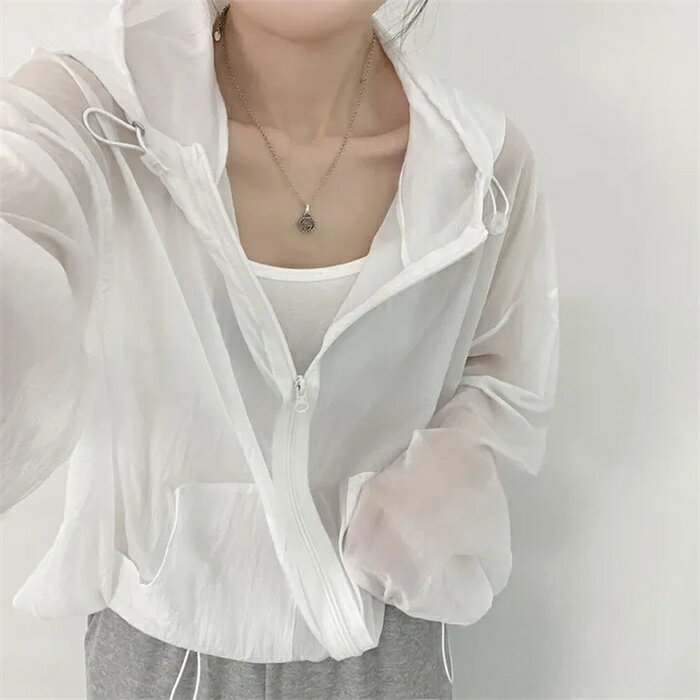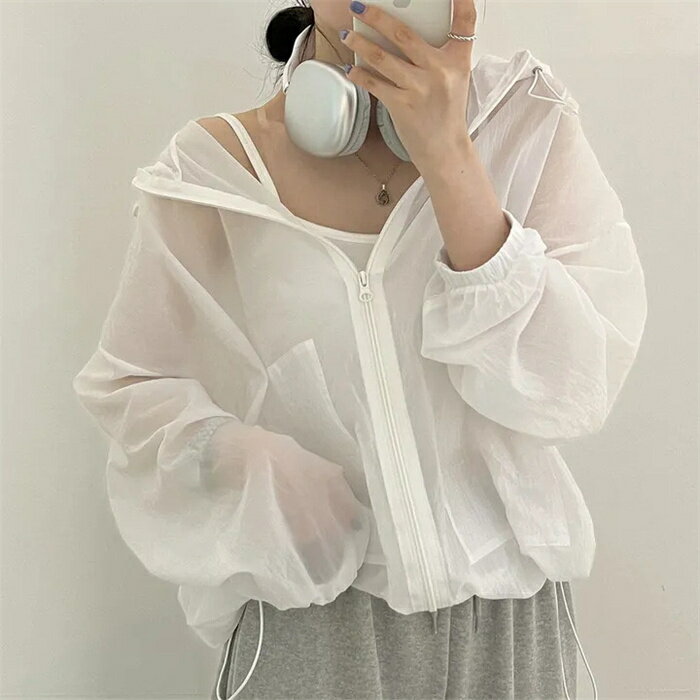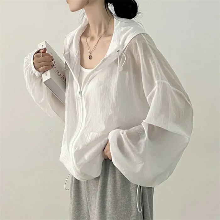 【クーポン利用で2,670円】パーカー uv対策 レディース 透け感 パーカー シアー UVパーカー ブルゾン アウター 薄手 透け感 ゆったり シアーブルゾン ショート丈 ライトアウター 透ける フード付きパーカー バルーンスリーブ サマージャケット 冷房対策 紫外線対策 サマー 夏