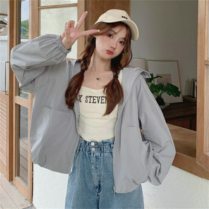 アウター パーカー レディース フード付き ショート丈 春 夏 ジャケット コート 薄手 体型カバー ライトアウター 長袖パーカー マウンテンパーカー フード付きパーカー 冷房対策 五分袖 羽織り 紫外線対策 夏用ジャケット トップス 長袖 羽織 無地 ゆったり