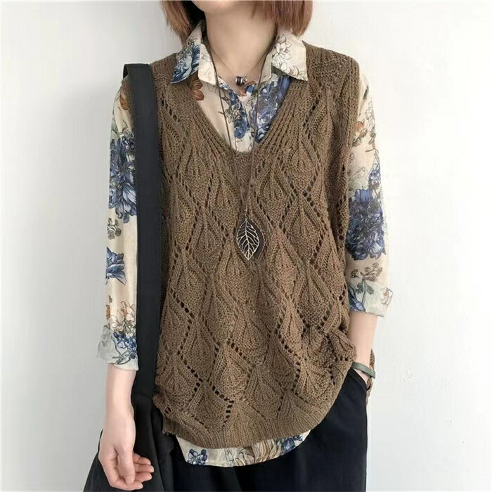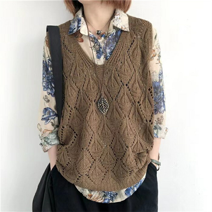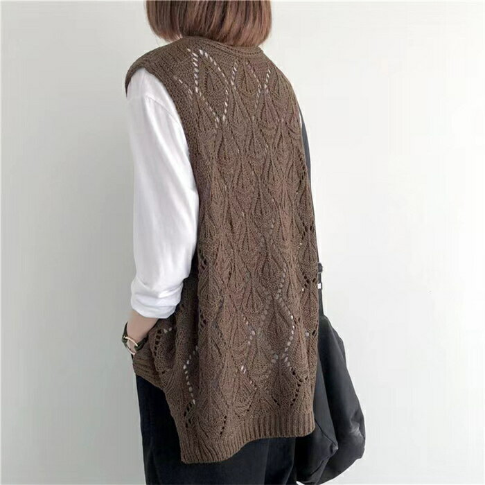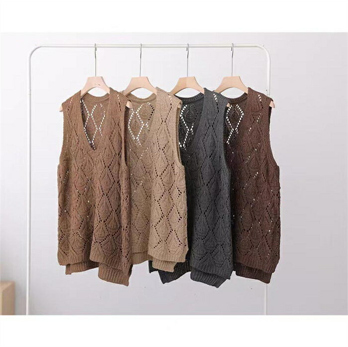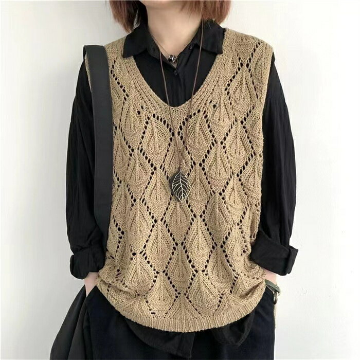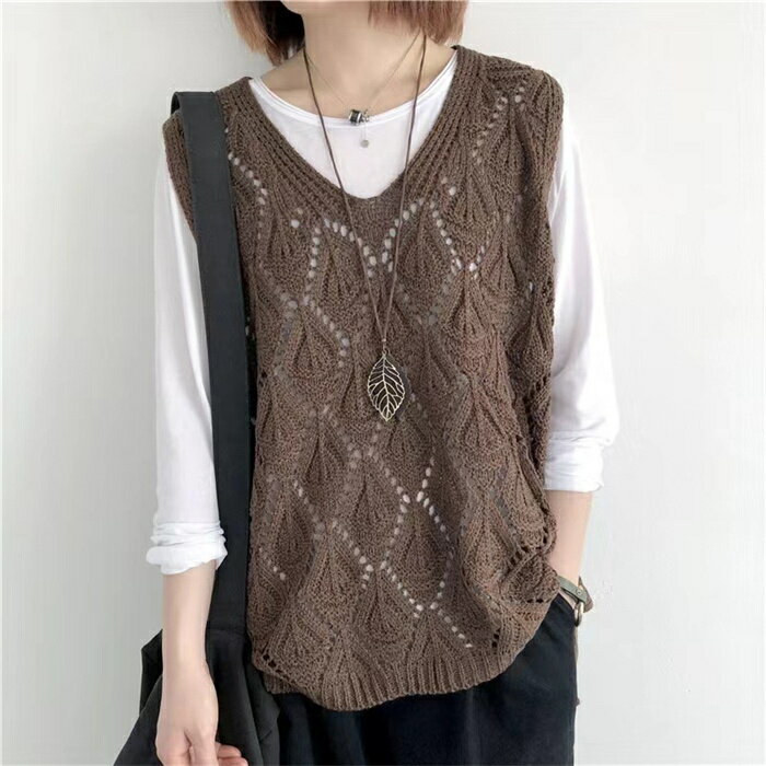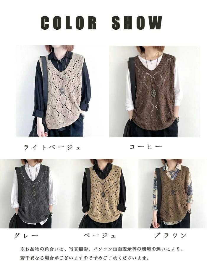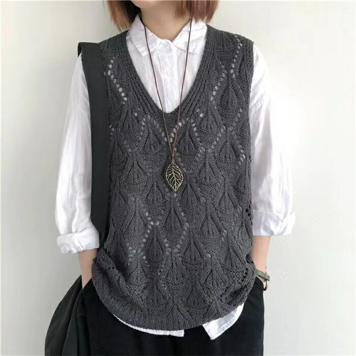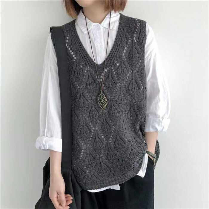 【タイムセール:クーポン利用で1,780円】ベスト レディース ジレ ニット 春夏 サマーニット ジレ 透かし編み プルオーバー 透かし彫り ゆったり Vネック ニット ベスト ニットベスト トップス レイヤード風 ミドル丈 夏ベスト ノースリーブ 重ね着 カジュアル 送料無料