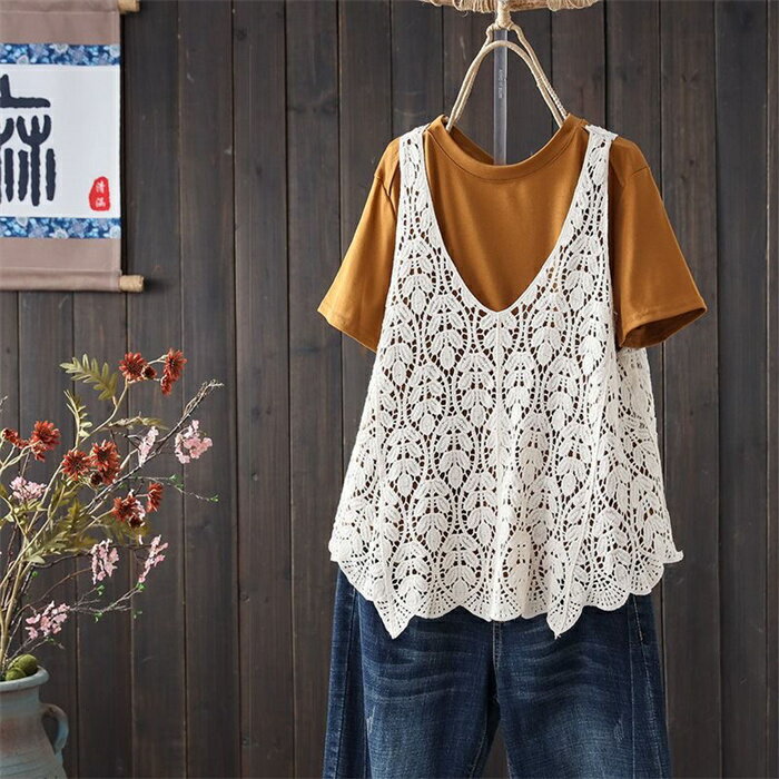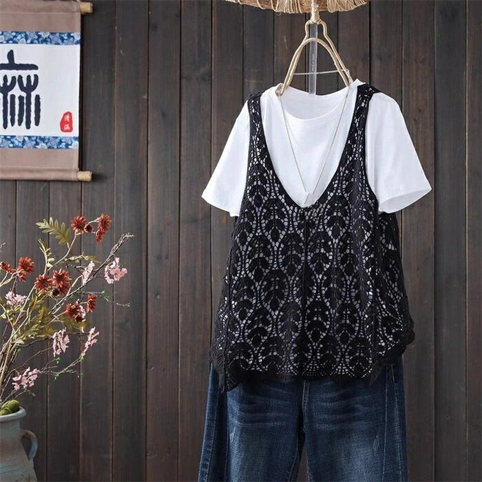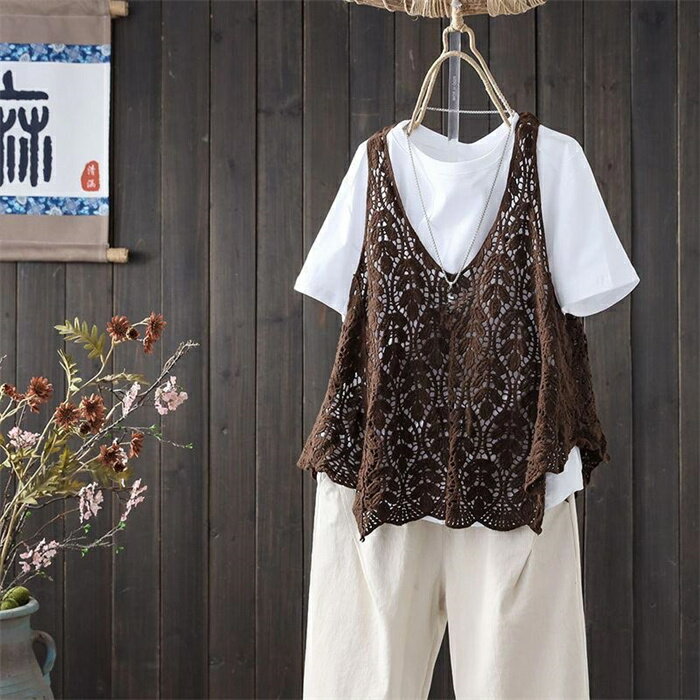 ベスト レディース 夏 トップス 透かし編み レース プルオーバー 透かし編みベスト ニット 重ね着 ジレ ニットベスト サマーベスト かぎ編み カジュアル 無地 レイヤード クロシェ編み ノースリーブ 体型カバー 着痩せ おしゃれ