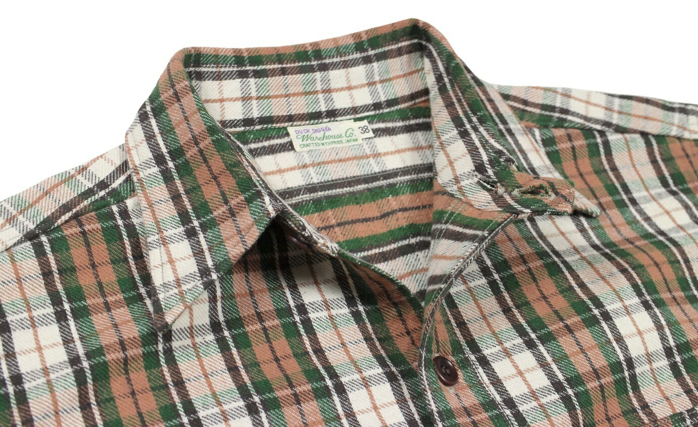 WAREHOUSE & CO. ["Lot 3022 FLANNEL SHIRTS WITH CHINSTRAP H柄 ONE WASH" サーモン size.S,M,L,XL]