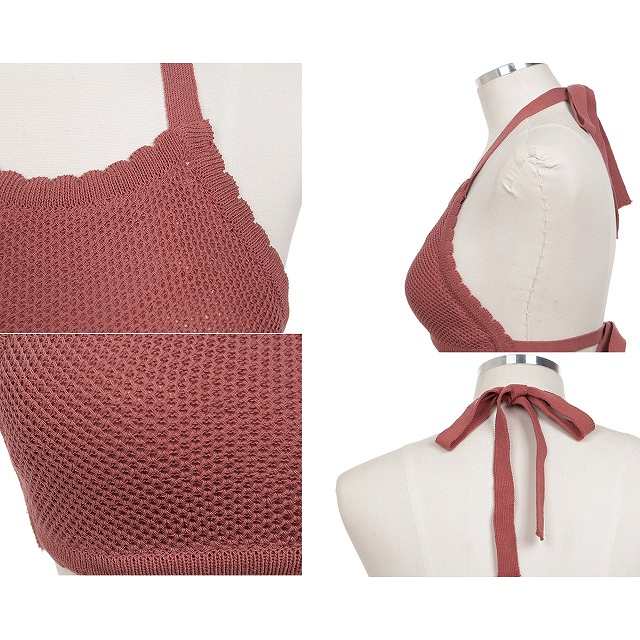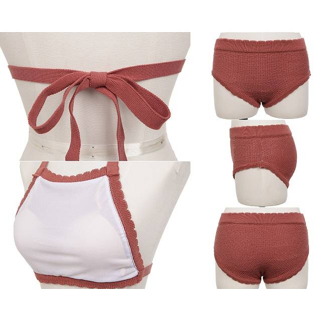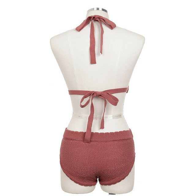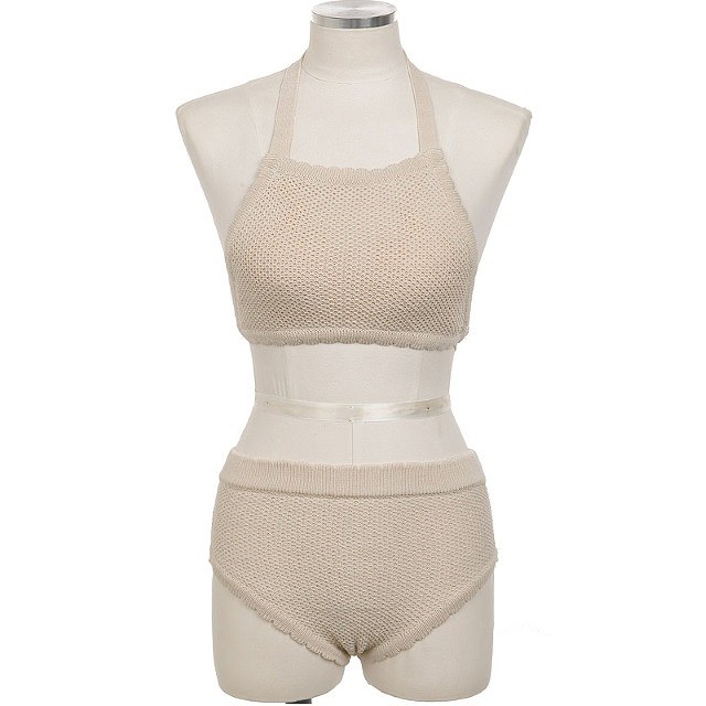 【7%offクーポン&P倍増】水着 レディース 水着 体型カバー キュート ニット 体型カバー ビキニ 人気 トレンド リボン セパレート ハイウエスト ナチュラルカラー シンプル 小胸 バスト 大人 女子 リゾート