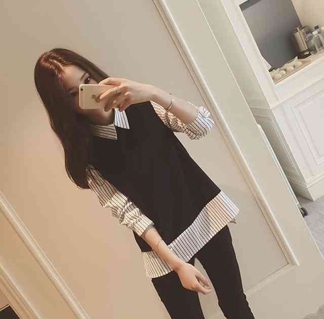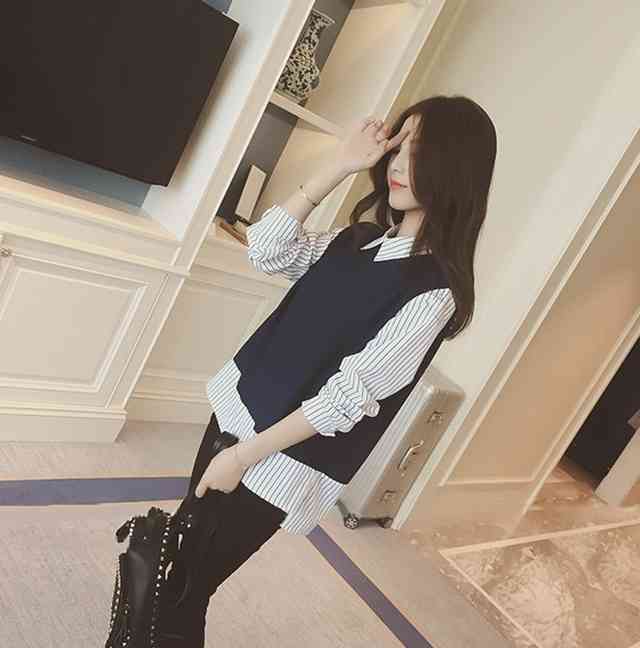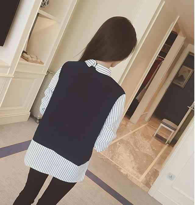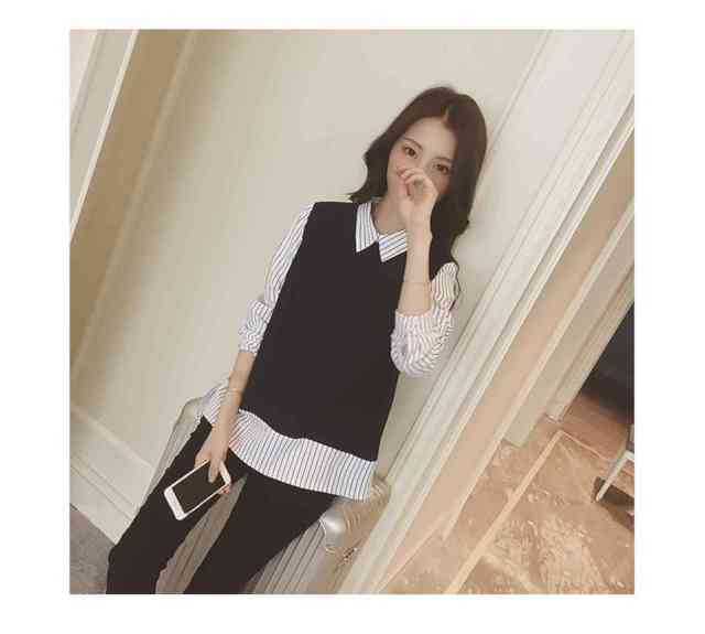 【7%offクーポン&P倍増】ブラウス レディース シャツ 長袖 トップス シンプル 大きいサイズ 春 夏 秋 小さいサイズ ベスト 一体 タイプ レイヤード 風 スキッパー ストライプ シャツ 無地ベストきれいめ ベーシック オフィス カジュアル オールシーズン