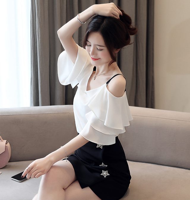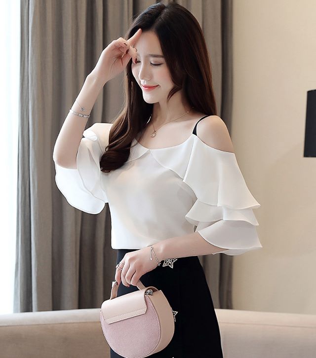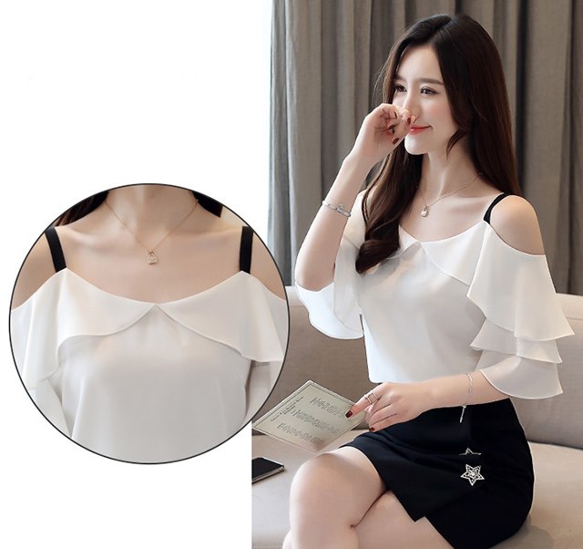【7%offクーポン&P倍増】オフショルダー トップス オフショル ブラウス フリル 半袖 肩出し 肩あき カットソー Tシャツ 袖あり ゆったり オフィス セクシー ガーリー ナチュラル 森ガール 清楚 シック 絞り レディース デート パーティー お呼ばれ お食事会
