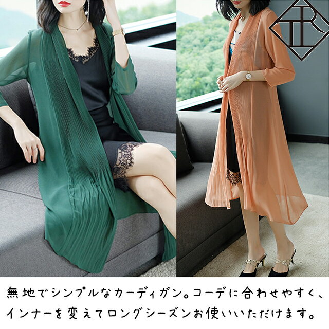 UVカット カーディガン レディース 薄手 UVカーデ ロングカーディガン 大きいサイズ レディース 羽織り UV対策 紫外線冷房トップス 春 夏 透け感 シースルー 体型カバー 袖ありゆったり シンプル ドレープ 長袖 ノーカラー 無地 単色