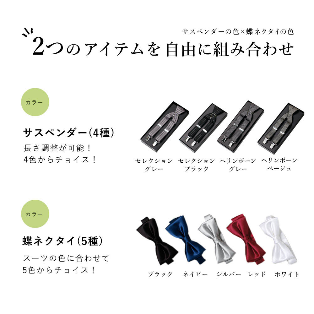 【前撮り2点セット】 新郎 前撮り 衣装 カジュアル ラフ 小物 セット 蝶ネクタイ サスペンダー おしゃれ ロケーション ロケ 結婚式 撮影 ホワイト ネイビー シルバー グレー レッド ブラック 黒 ベージュ ヘリンボーン 海沿い 森 芝生 春 夏 秋 冬 二次会 すぐ届く 送料無料