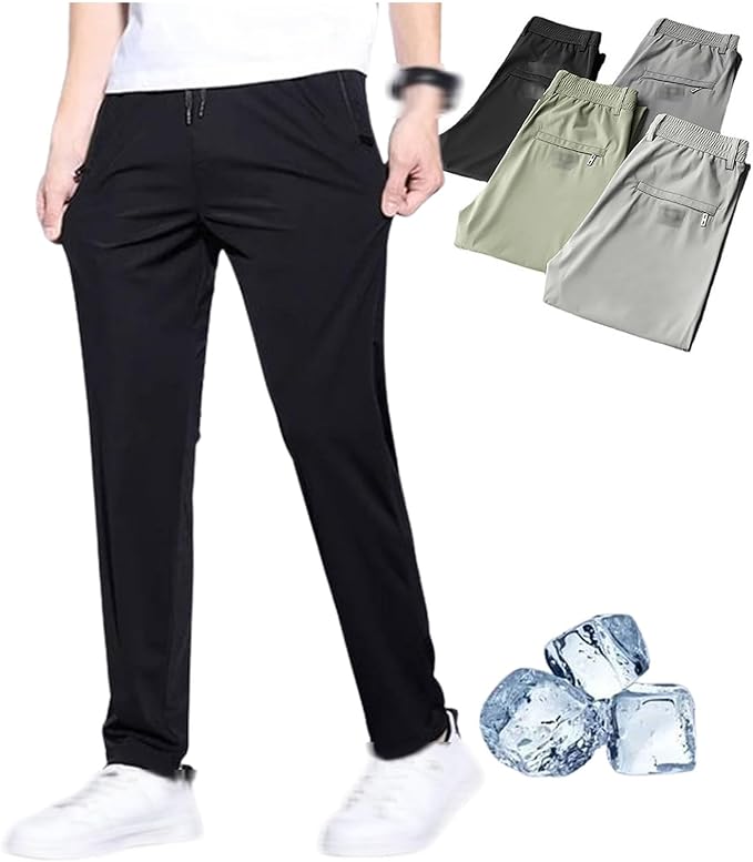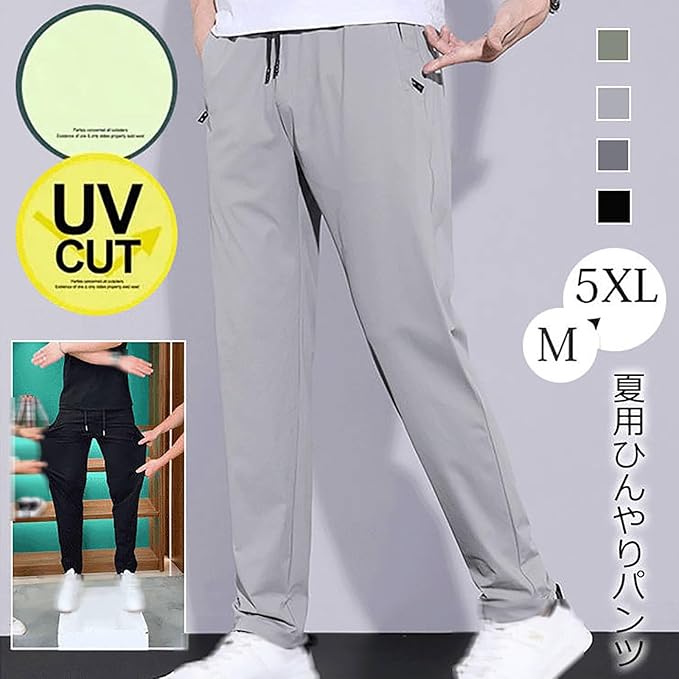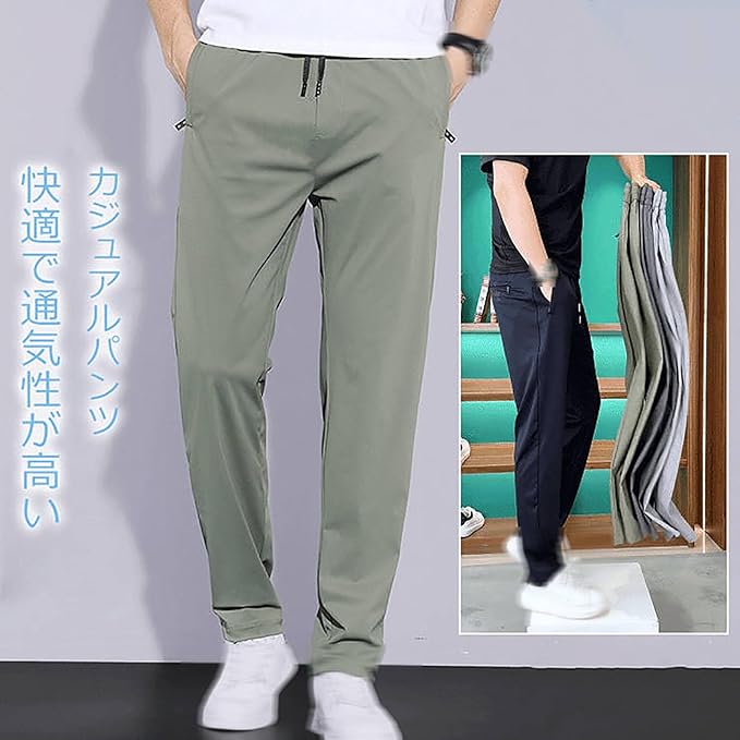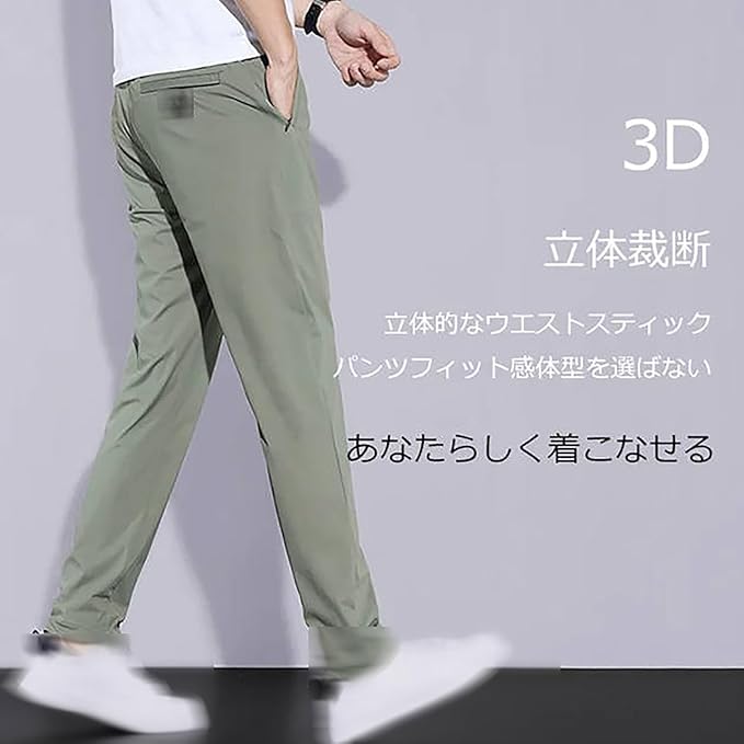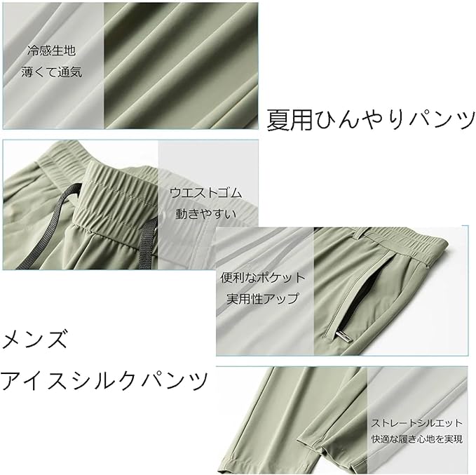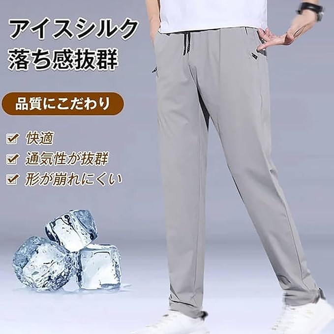 接触冷感 ズボン メンズ パンツ 夏 夏用ひんやりパンツ、メンズ防シワストレッチカジュアルパンツ、メンズアイスシルクパンツ カジュアル スリム型 アイスシルク 夏 立体裁断 極薄 耐摩耗 通気性 快適 吸汗速乾 超快適でストレスフリー 便利 実用 フィット感