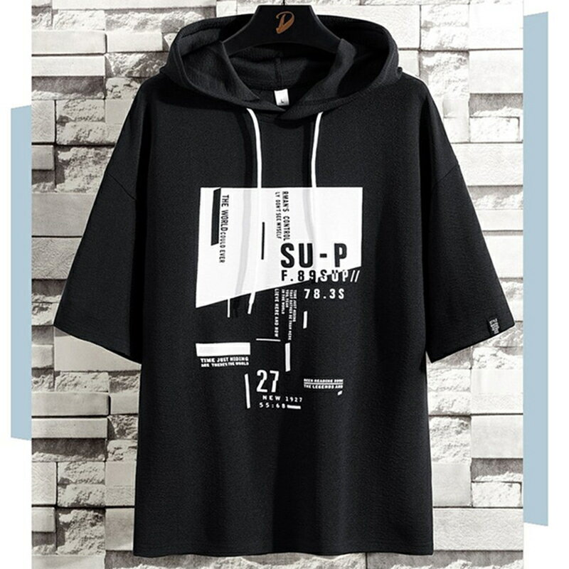 半袖 パーカー メンズ tシャツ 夏服 プリント トップス フード付き カジュアル プルオーバー 大きいサイズ ゆったり おしゃれ カジュアル 部屋着 M~3XL お兄系 通学 快適 シンプル 薄手