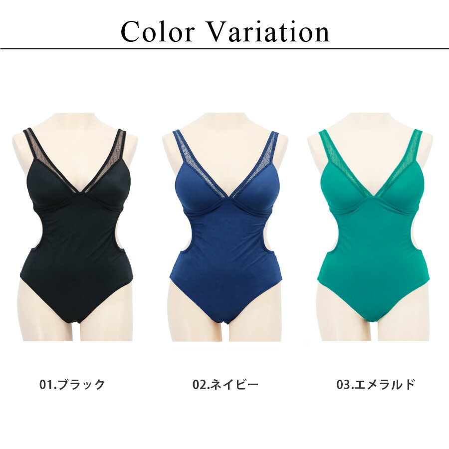 【最大20%OFFクーポン】水着 カーヴィカットバックオープンワンピース5color ブラック ネイビー エメラルド レッド サーモンピンク【tu-hacci】
