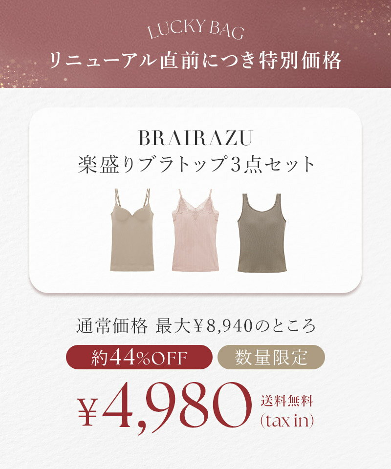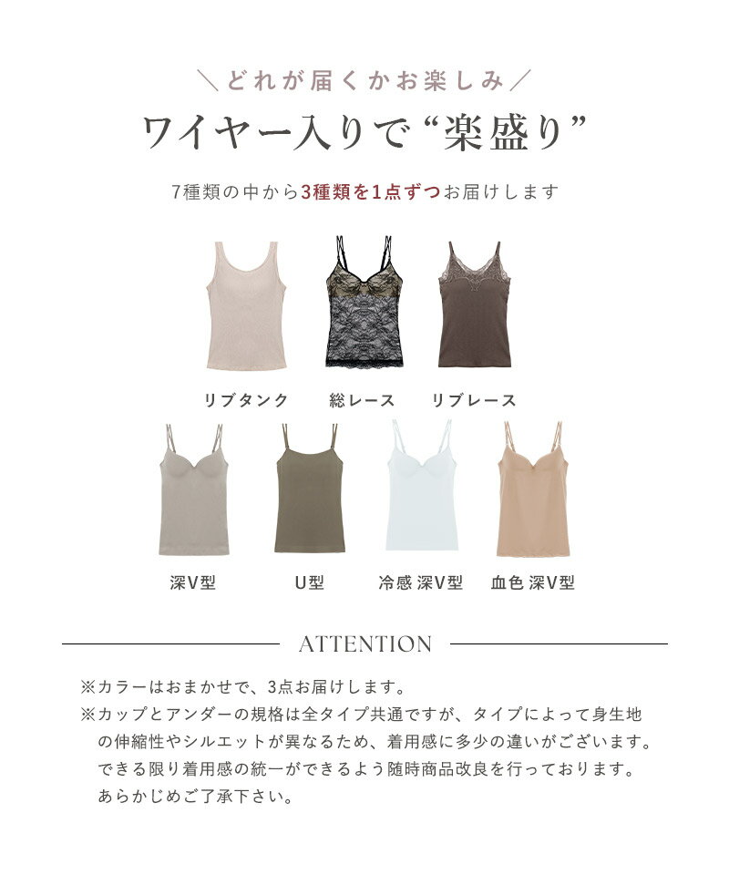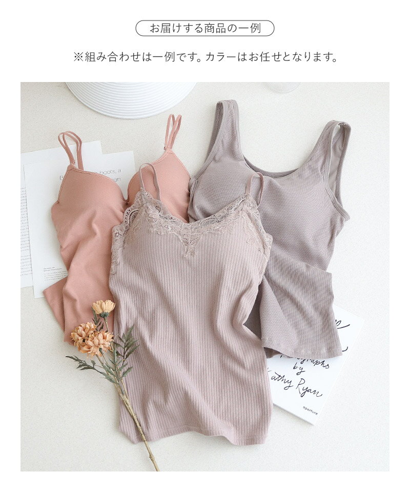 数量限定!福袋 2025《ワイヤー入りブラキャミ3枚セット》デザイン・カラーおまかせ【今なら8,940円⇒4,980円!】ブラトップ ブラキャミ カップ付きインナー キャミソール タンクトップ リブ レース【tu-hacci】