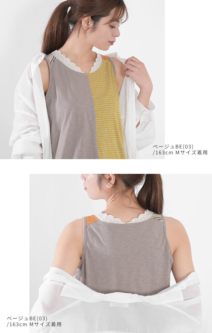 【クーポン利用で半額】 タンクトップ インナー カットソー レディース 襟レース プルオーバー トップス ボーダー 無地 ライム Lime.inc レイヤード 重ね着 切り替え レース ゆったり 楽ちん 大きいサイズ 大人 可愛い ナチュラル カジュアル 服 [M便 1/1]