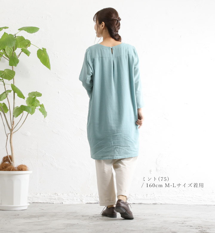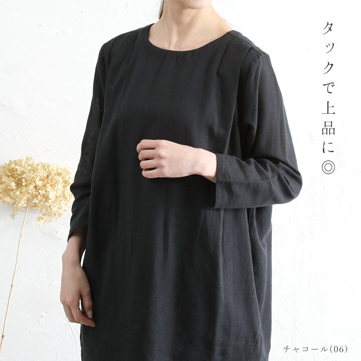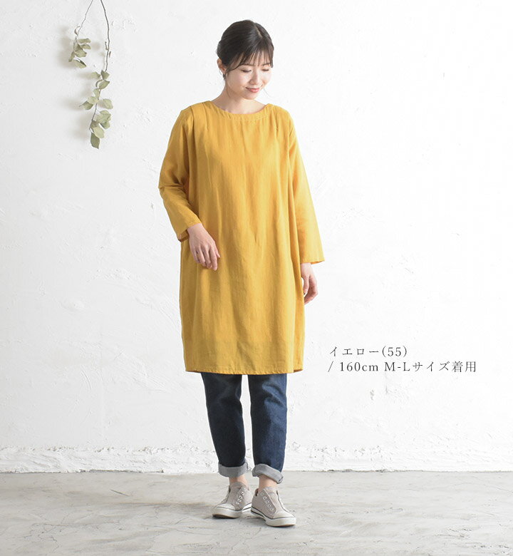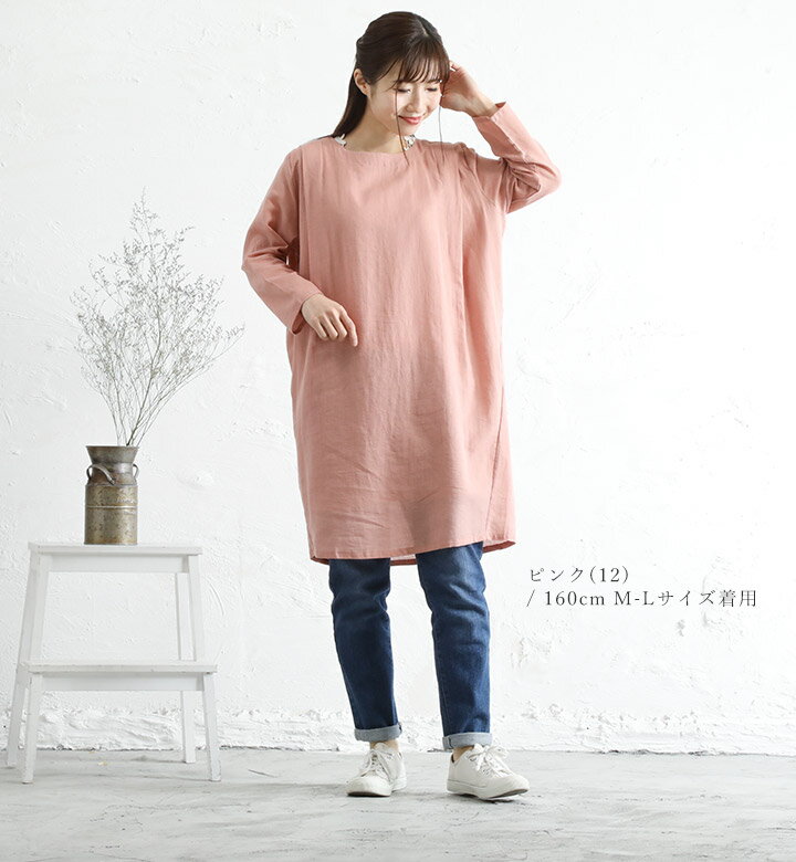 【福袋対象D】 チュニックワンピース 綿麻 コットンリネン チュニック 長袖 レディース プルオーバー コクーンワンピース ブラウス 無地 インド綿 春秋 夏 クルーネック カジュアル 大人 かわいい ナチュラル 服 シンプル [M便 不可]
