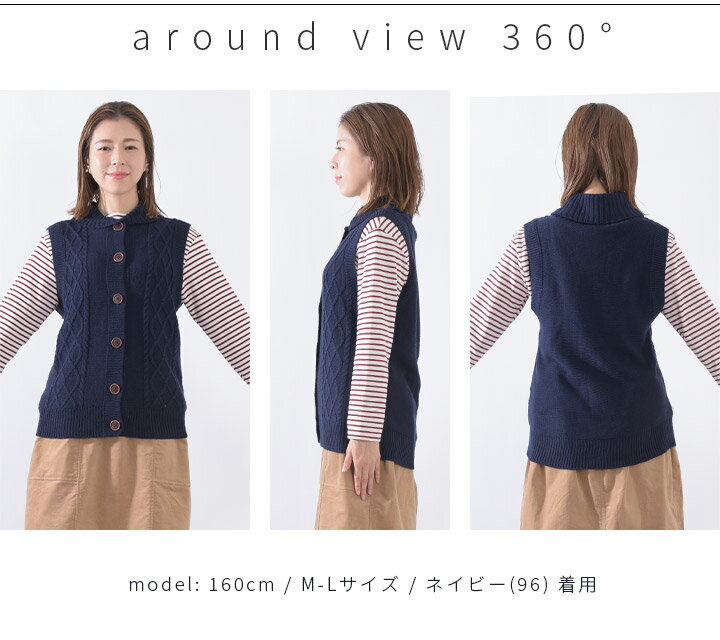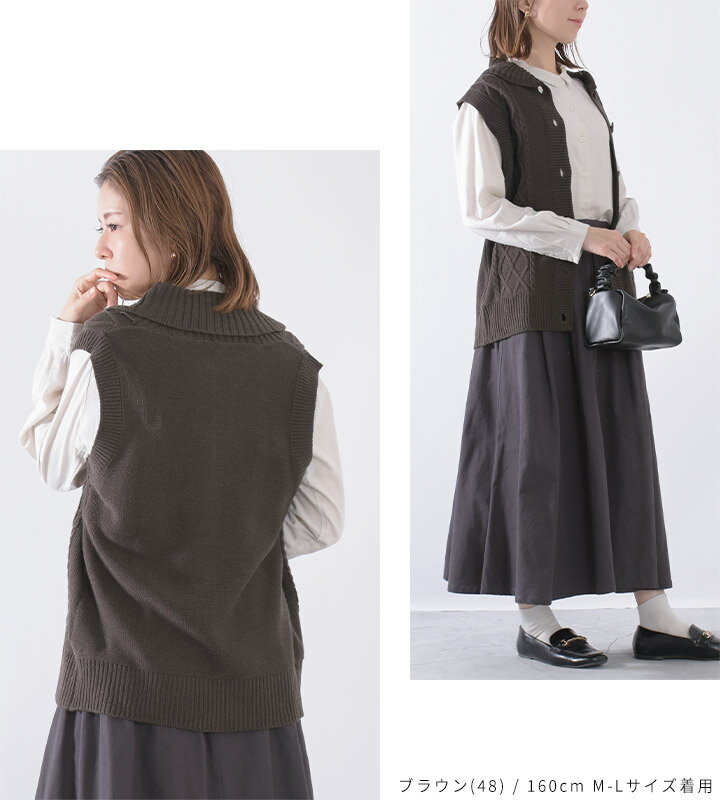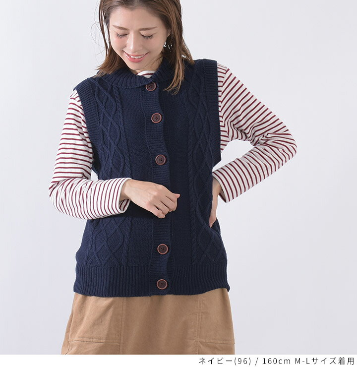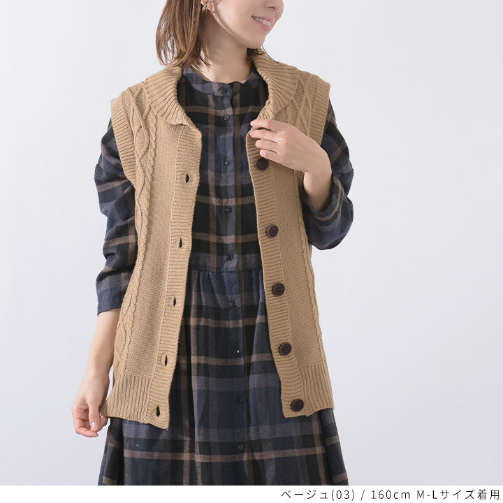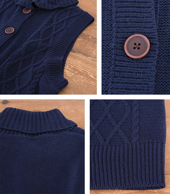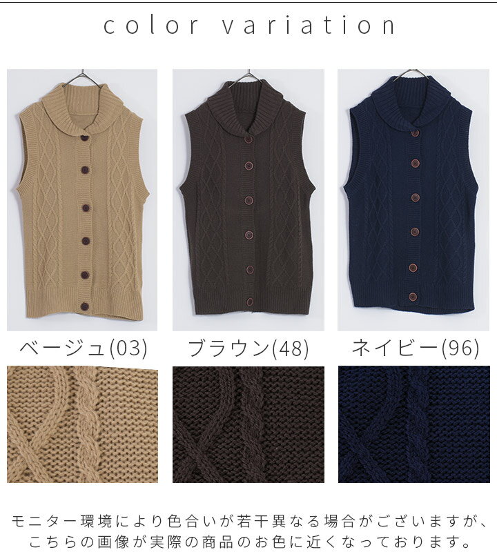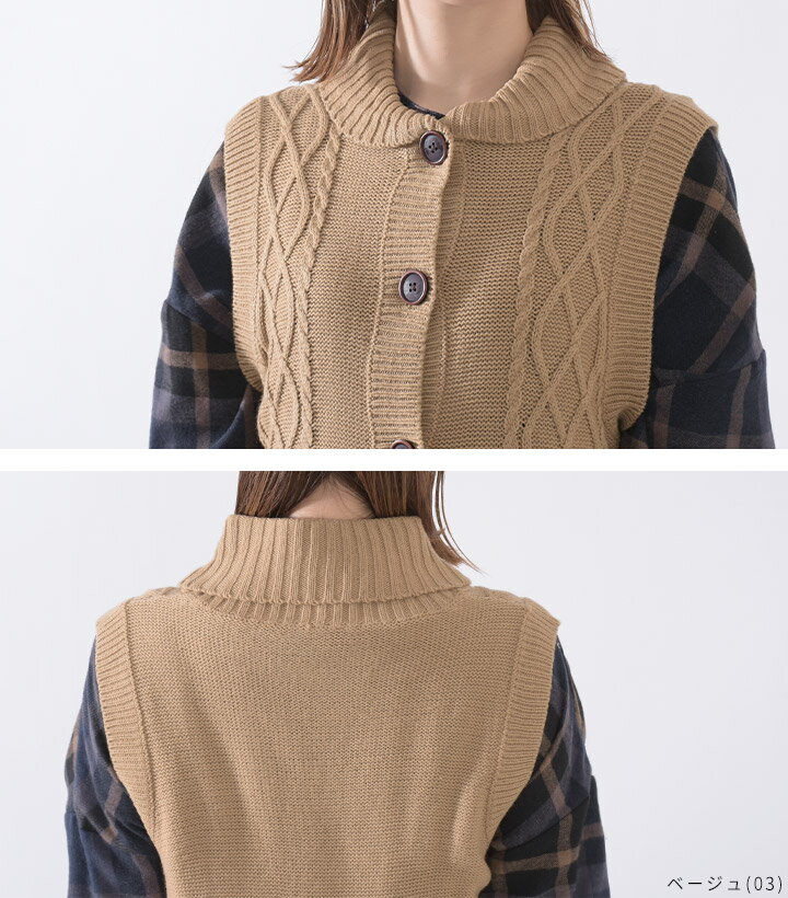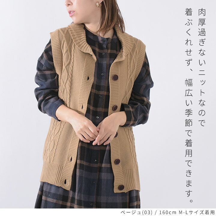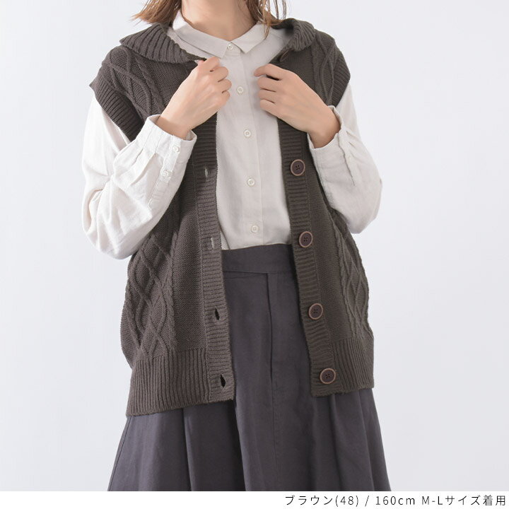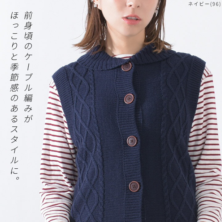【福袋対象C】 ニットベスト レディース 前開き 襟付き ケーブル編み ニット ベスト ジレ セーター トップス ノースリーブ アクリル ウォッシャブル 洗える レイヤード 重ね着 無地 ゆったり 大きいサイズ ナチュラル カジュアル 秋冬 [M便 不可]