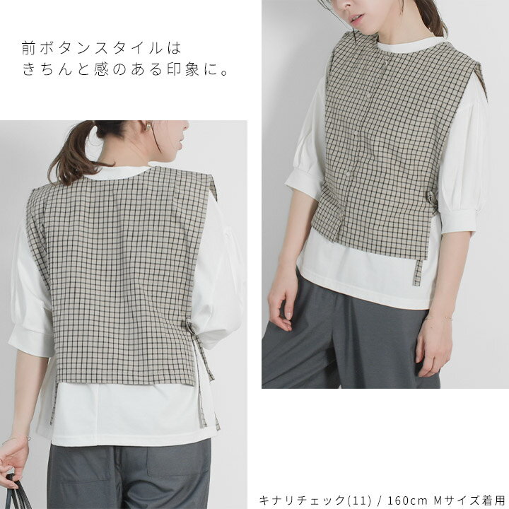 【福袋対象D】 ベスト レディース サイドリボン シャツ ブラウス プルオーバー 前開き 前後着用 2way ノースリーブ トップス 重ね着 レイヤード keitto ケイット ノースオブジェクト north object 大きいサイズ 大人 ナチュラル カジュアル [M便 1/1]