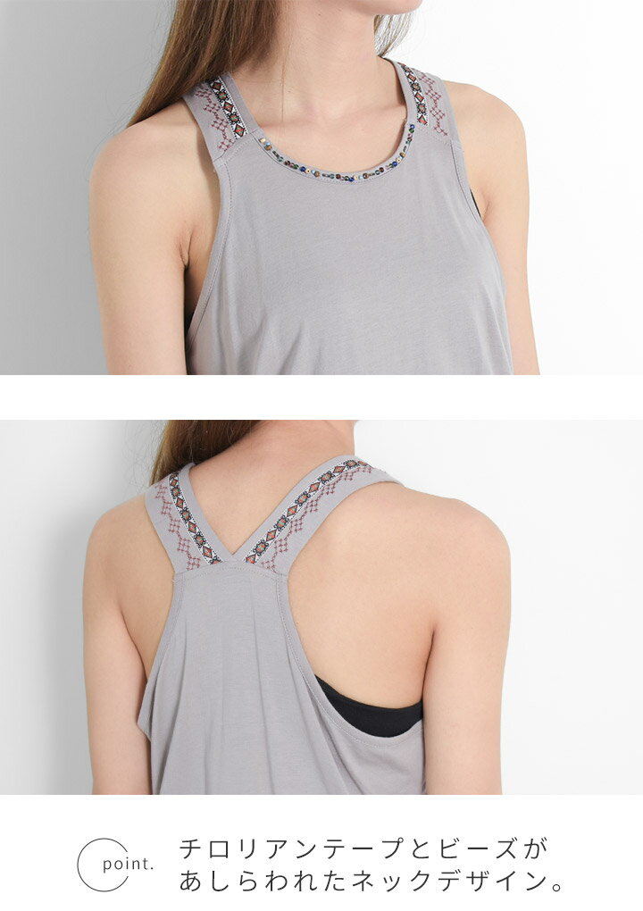 【福袋対象D】 タンクトップ インナー レディース ノースリーブ トップス 無地 レイヤード 重ね着 インナータンク ライム Lime.inc チロリアンテープ エスニック ビーズ アメカジ 大人 可愛い ナチュラル カジュアル 服 春 夏 [M便 1/1]