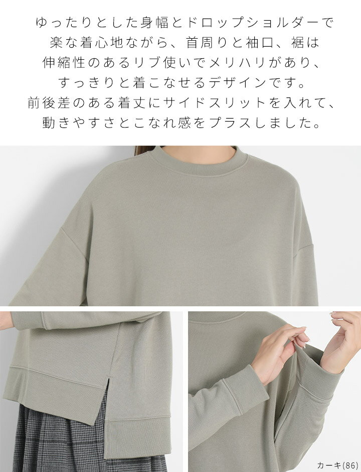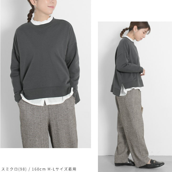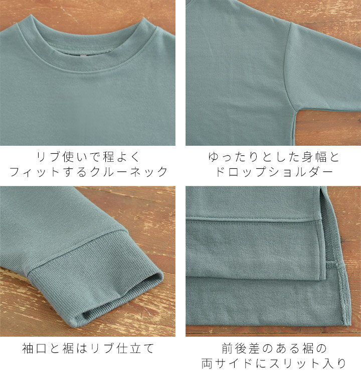 【福袋対象B】 スウェット トレーナー ワイド レディース プルオーバー トップス カットソー Tシャツ 長袖 裏毛 裏パイル 綿混 コットン 大きいサイズ ゆったり 体型カバー ドロップショルダー 無地 大人 可愛い ナチュラル カジュアル 服 [M便 不可]
