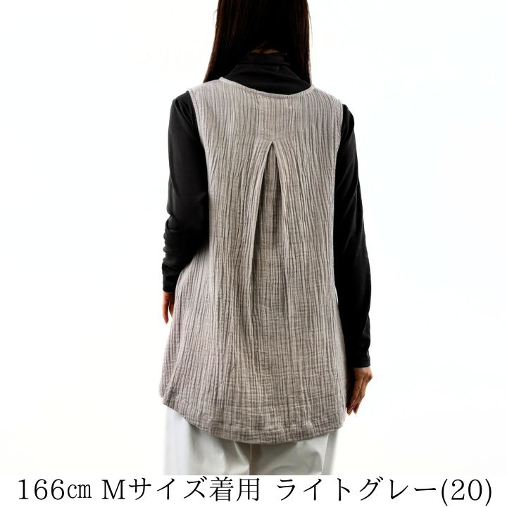 【2点ご購入で20%OFFクーポン】 ハイツイスト コットン Wガーゼ ジレ ベスト コットンジレ レディース ロングジレ 前開き リラシク LILASIC ノースオブジェクト トップス 無地 ノーカラー 羽織り チョッキ 大きいサイズ 大人 可愛い ナチュラル カジュアル 服 [M便 1/1]