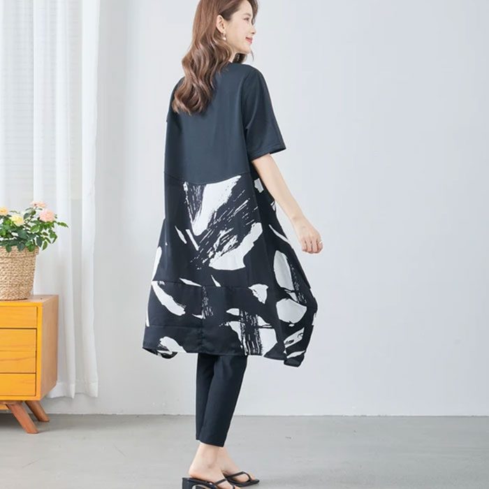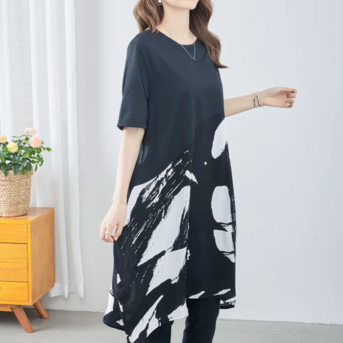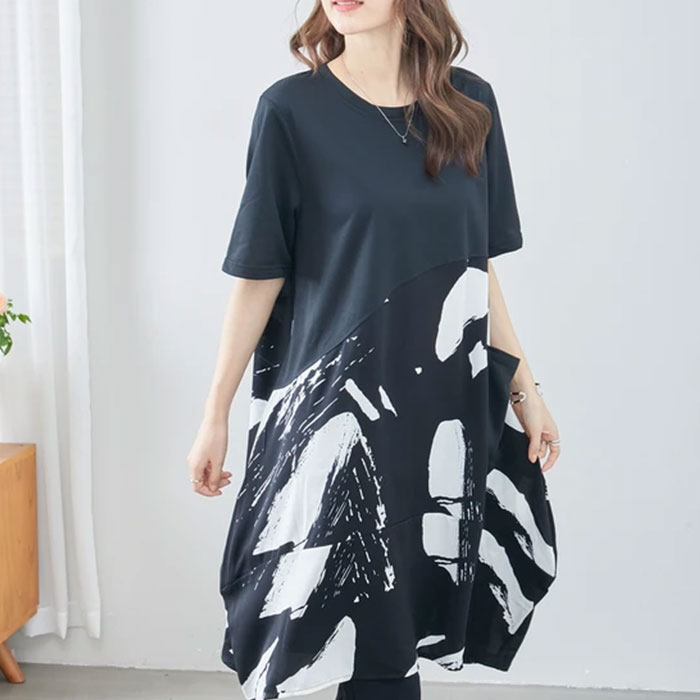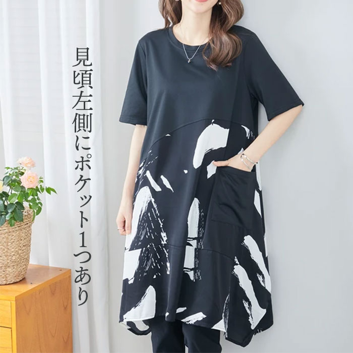 チュニック ワンピース 50代 春 夏 大人可愛い シャツ チュニック 半袖 おしゃれ 上品 カジュアル ゆったり 40代 黒 クロ 大人 きれい ミセス ナチュラル 体型カバー 切り替え モノトーン チュニック tシャツ aライン シンプル ミセス