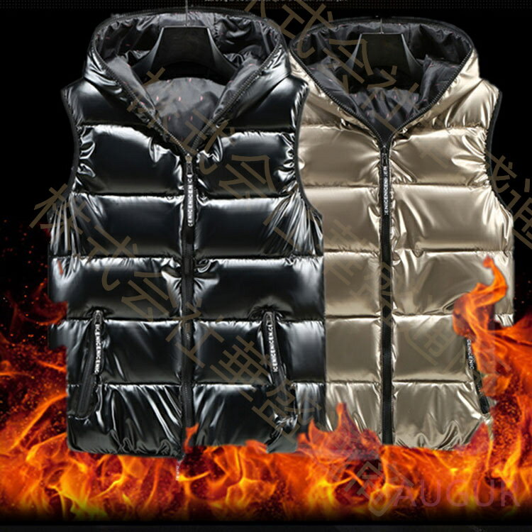 ダウンベスト メンズ 中綿 ショート丈 フード付き ダウンジャケット 中綿ジャケット ポリエステル 厚手 光沢 シンプル アウター ファスナー トップス カジュアル 秋 冬 あったか 防寒 保温 防風 紳士用 ファッション aaa
