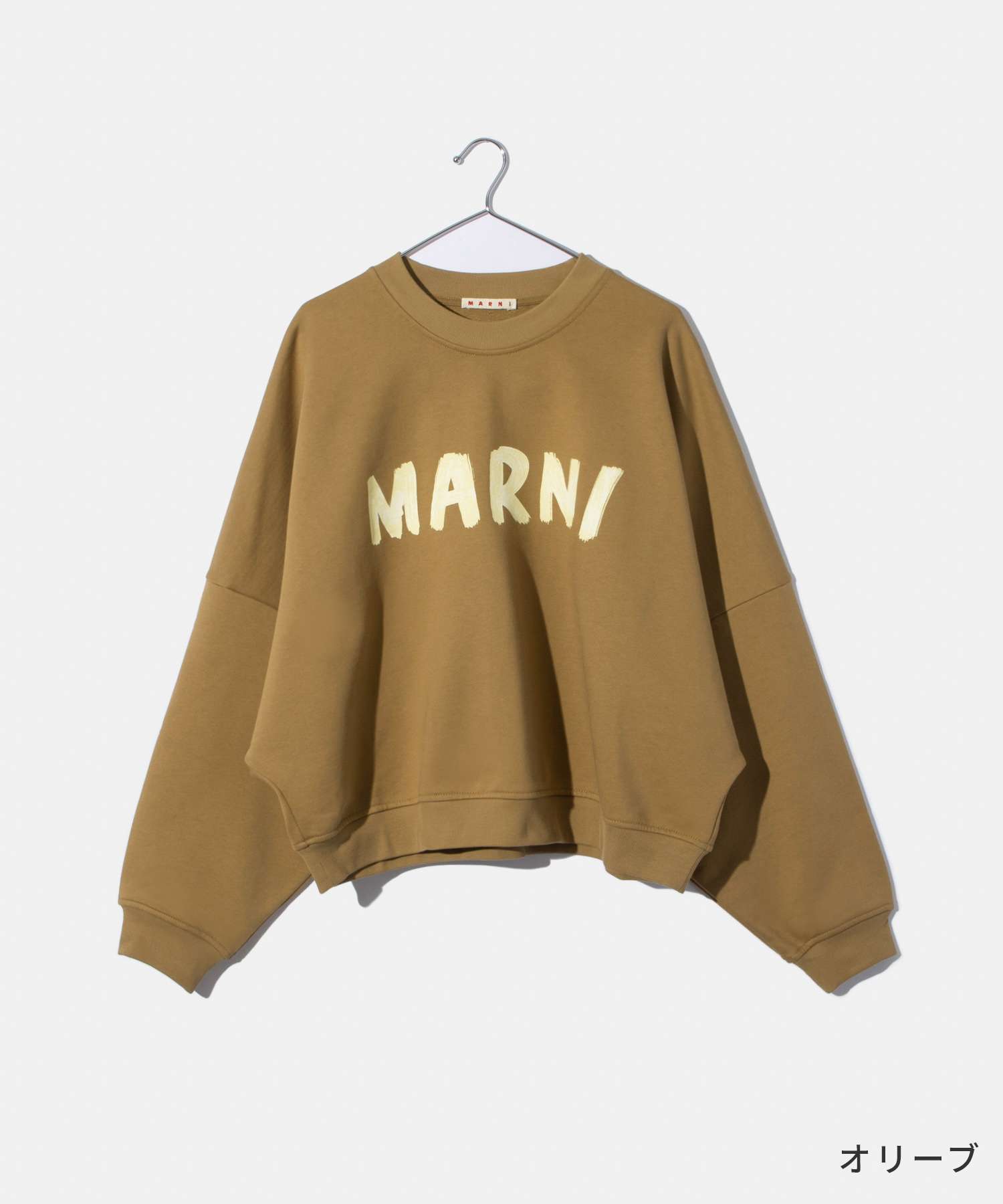 マルニ MARNI FLJE0185P2 USCU88 スウェット SWEATSHIRT レディース トップス トレーナー 長袖 ロゴ クルーネック カジュアル シンプル コットン ドロップショルダー 綿 プレゼント ギフト シャドー オリーブ 40 42 44