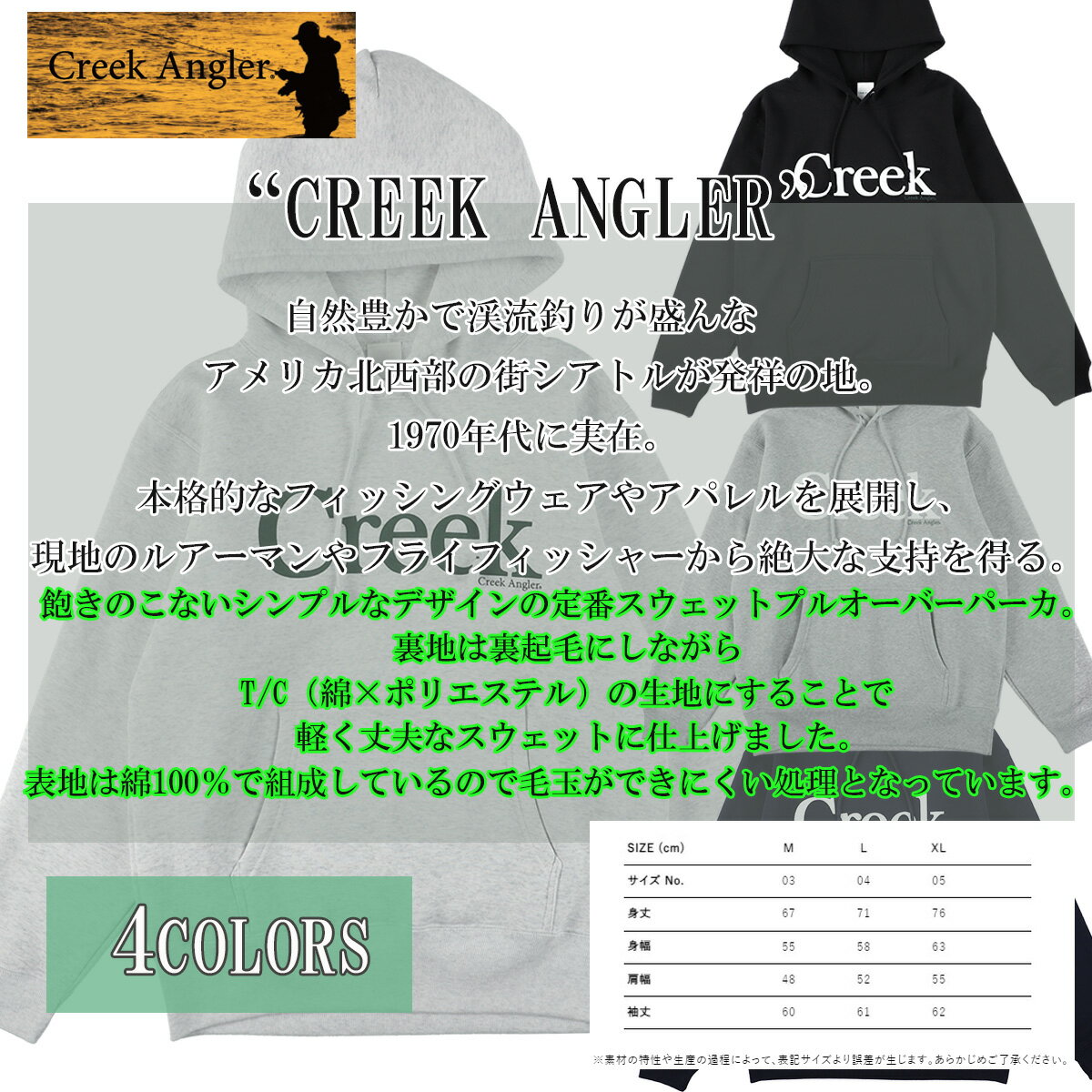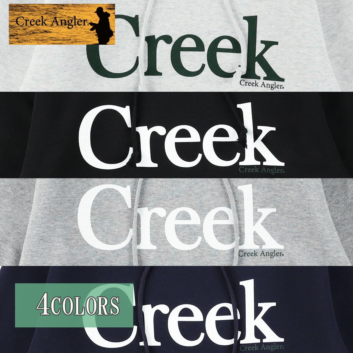 送料無料 CREEK ANGLER (クリークアングラー) パーカー メンズ レディース CRAG-013 10.0oz ロゴ 釣り プルオーバー フィッシング ウェア スウェット シャツ アメカジ