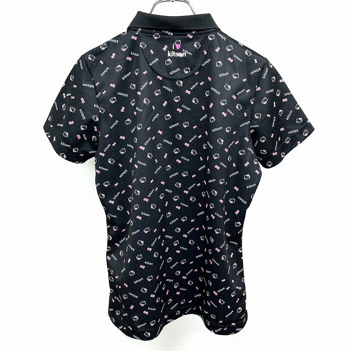 【中古】kitson LA Meets Hello Kitty キットソン LA×ハローキティ M レディース ポロシャツ スポーツシャツ 半袖 ポリ100% ブラック×ピンク 黒
