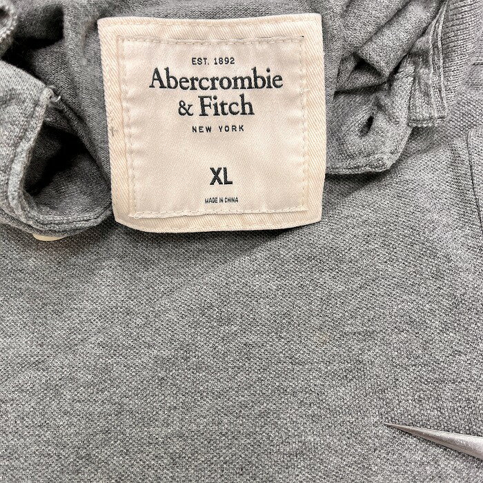 【全品PT10倍|開催中】\楽天お買い物マラソン!!/専用クーポン配布中&全品PT10倍!! ※バナー参照■□【中古】Abercrombie&Fitch アバクロンビーアンドフィッチ XL レディース ポロシャツ 鹿の子 USED加工 ビッグムースの刺繍 半袖 綿100% 杢グレー