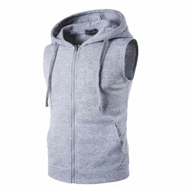 パーカー ノースリーブ メンズ フード付き ベスト スウェット パーカ 重ね着 レイヤード 前開き 袖なし トップス 送料無料 ファスナパーカ ポケット付き 羽織り