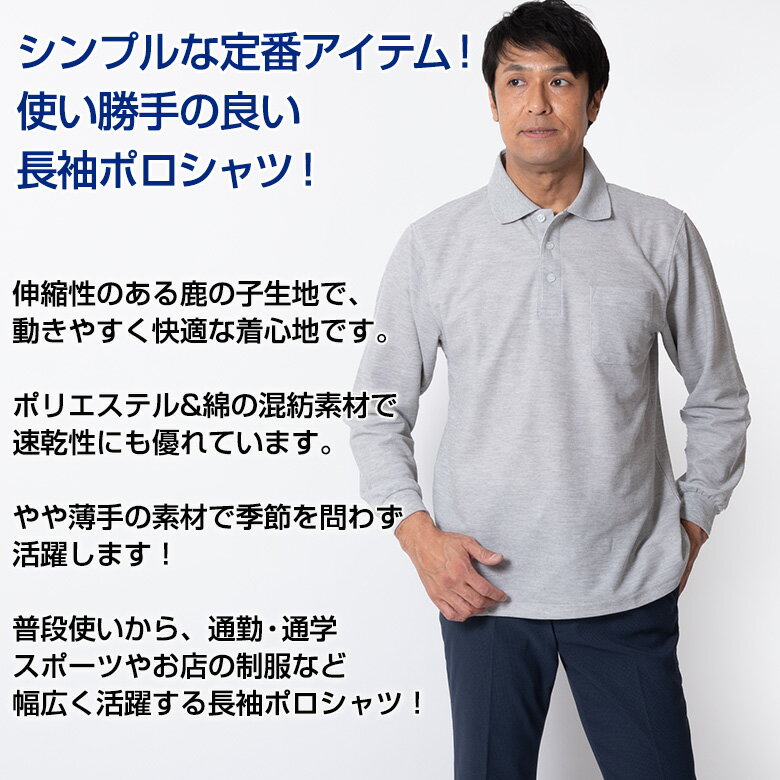 ポロシャツ 長袖 メンズ 吸水速乾 鹿の子 ストレッチ ゴルフ ビジカジ 外出 制服 作業着 普段着 旅行 321018 送料無料 メール便