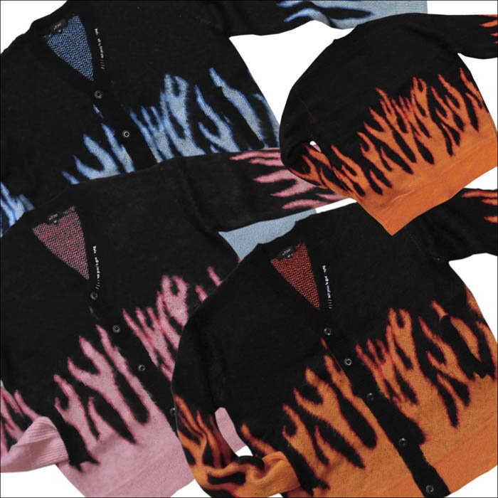 【送料無料】【ポイント10倍】ファイアー柄 メンズ ビッグシルエット カーディガン モヘアタッチ ファイヤー 火 モヘア ビッグ カーデ ニット BIG ユニセックス ジェンダーレス 男女兼用