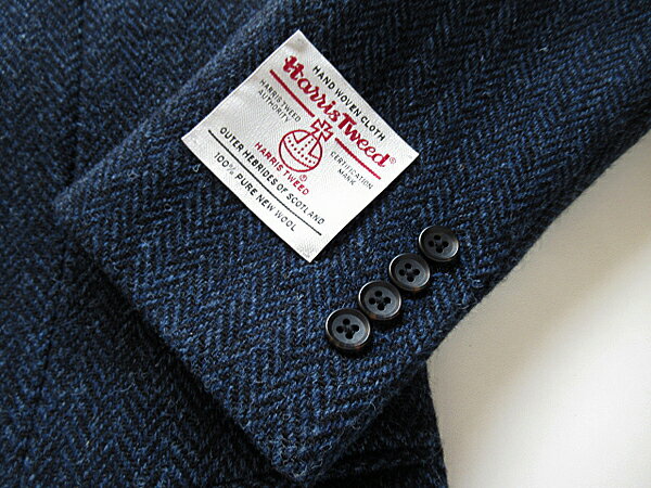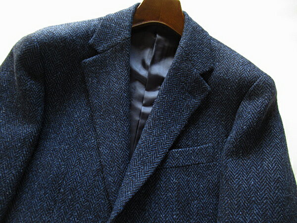 SALE 英国製生地 秋冬 Harris Tweedハリスツイード ジャケット メンズ ツイードジャケットウール100% ネイビー ヘリンボーン柄