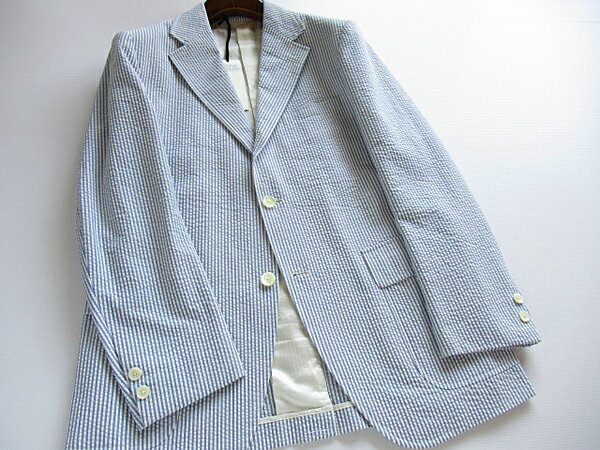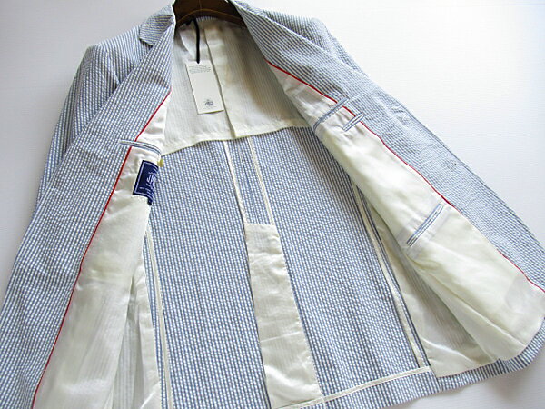 SALEF オンワード樫山正規品 春夏モデル J.PRESS J.プレス シアサッカージャケット 白×ブルー綿100% 定価59,400円(税込)