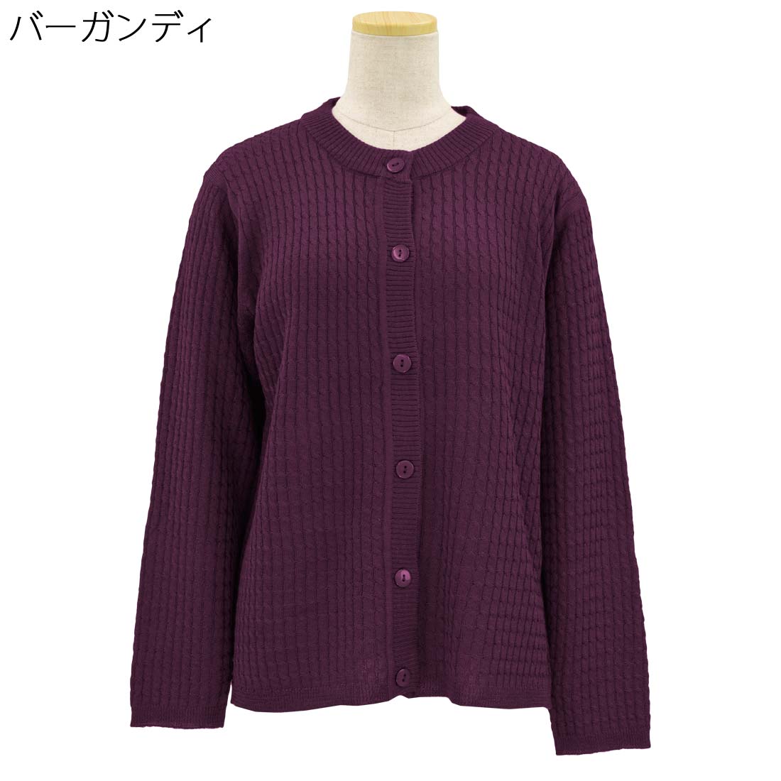 婦人 定番 毛混 縄編み 丸襟 カーディガン●婦人 秋冬 70代 80代 90代 春夏 母の日 シニアファッション