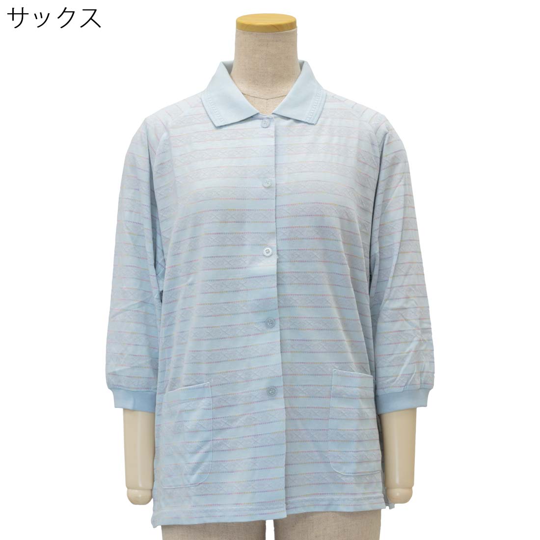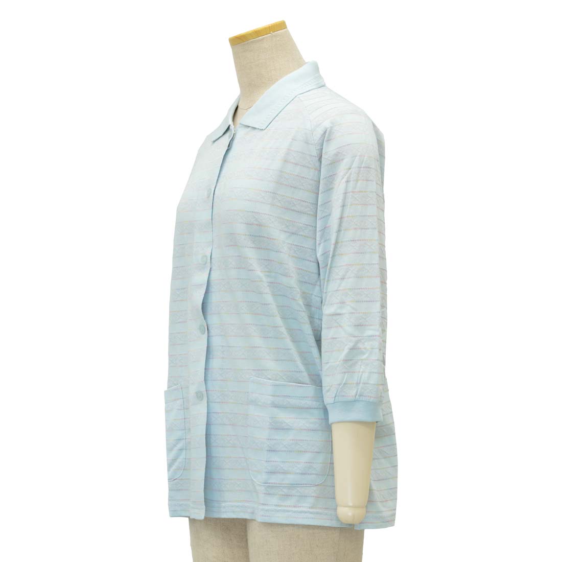 シニア マグネット ボタン7分袖 ポロシャツ ラグラン 前開き ストレッチ カーディガン 70代 80代 90代 母の日 シニアファッション