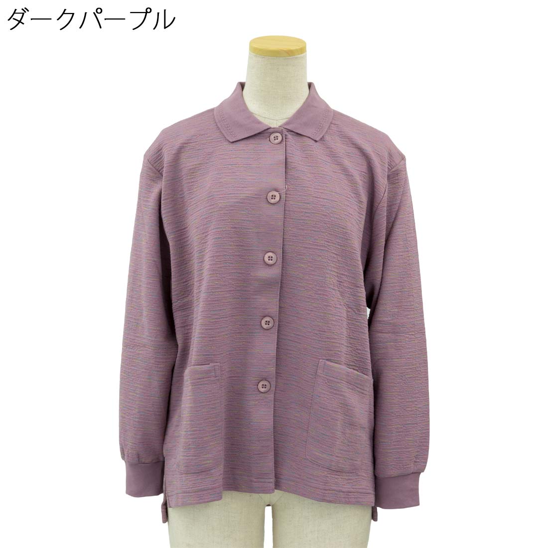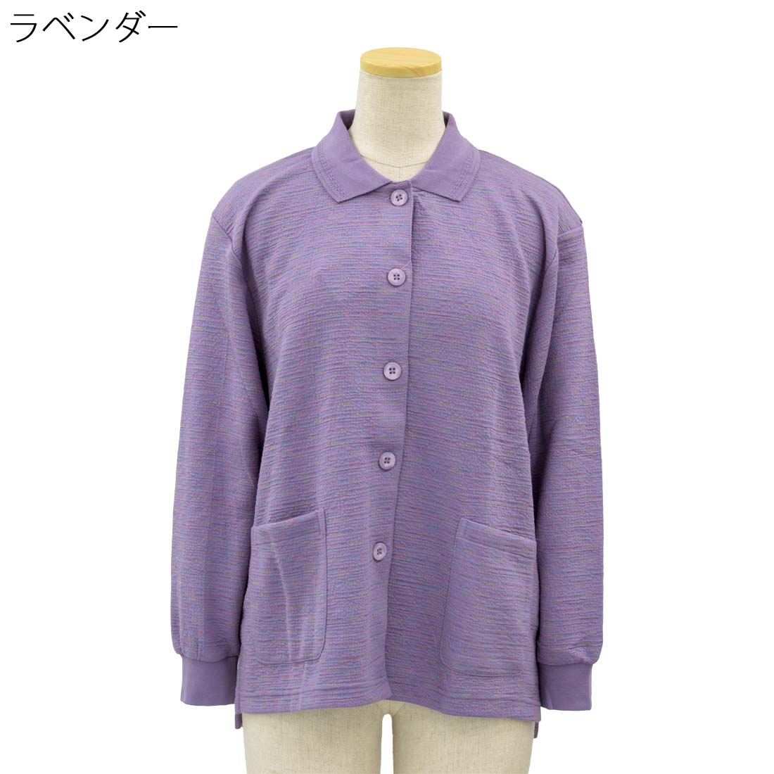 シニア 長袖 前開き ボタン レインボー ジャガード ポロシャツ カーディガン●女性 婦人服 レディース 高齢者服 高齢者 婦人 シニアファッション 秋冬 70代 80代 90代 服 通販 高齢者