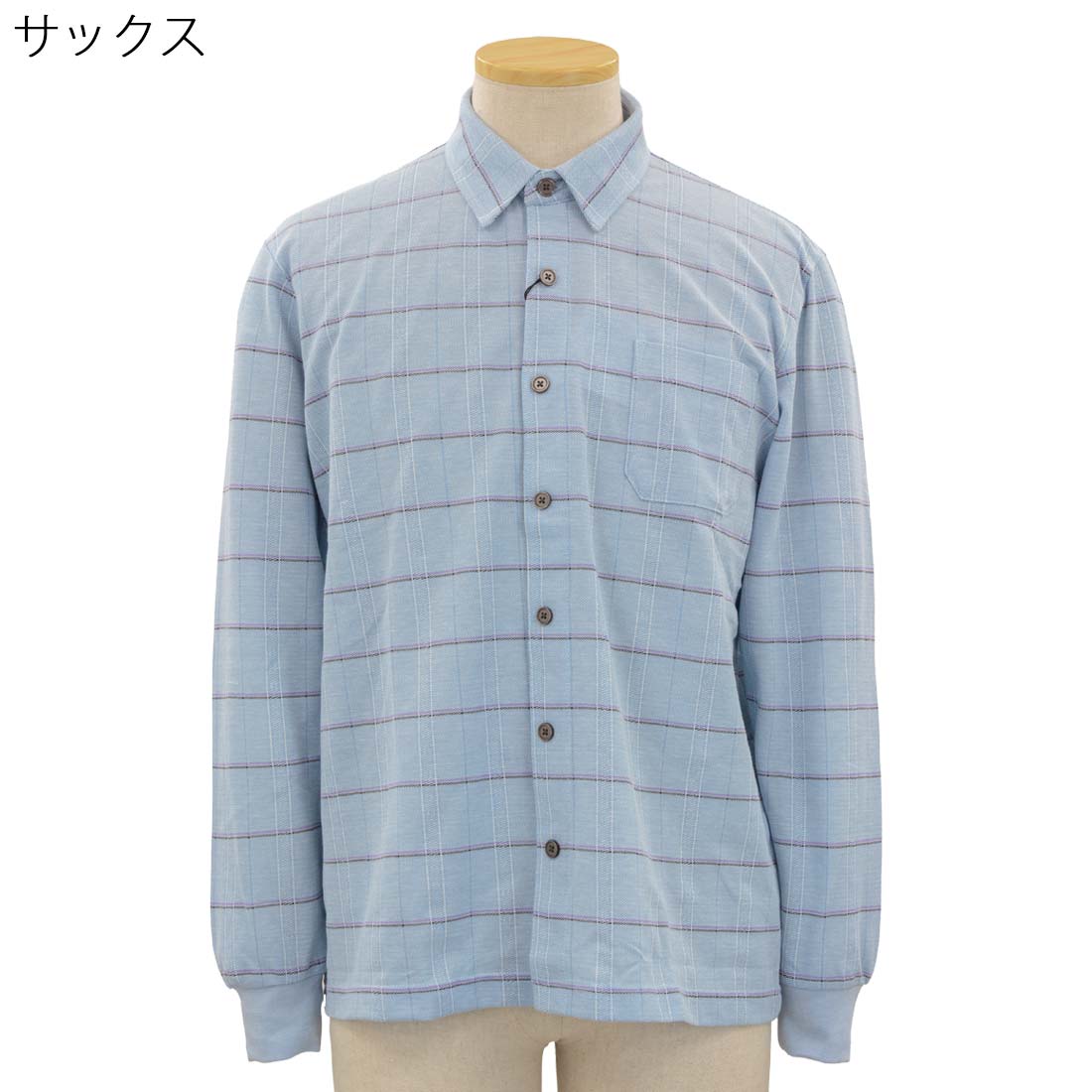 長袖 スナップボタン ワンタッチ 全開 ニット シャツ シニアファッション 春夏 70代 80代 90代 敬老の日 高齢者 紳士服 おじいちゃん お年寄り 介護 施設 デイサービス