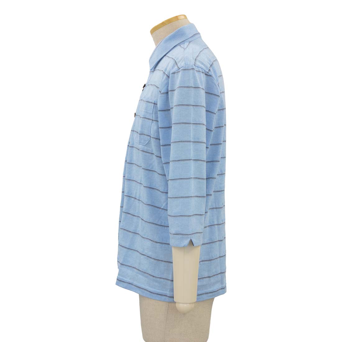 七分袖 マジックテープ 麻混 ワンタッチ ニット シャツ 春夏 トップス シニアファッション シニア 紳士 メンズ 70代 80代 90代 ギフト紳士服 高齢者 服装 おしゃれ おじいちゃん おすすめ 通販 介護 施設 デイサービス 名入れ