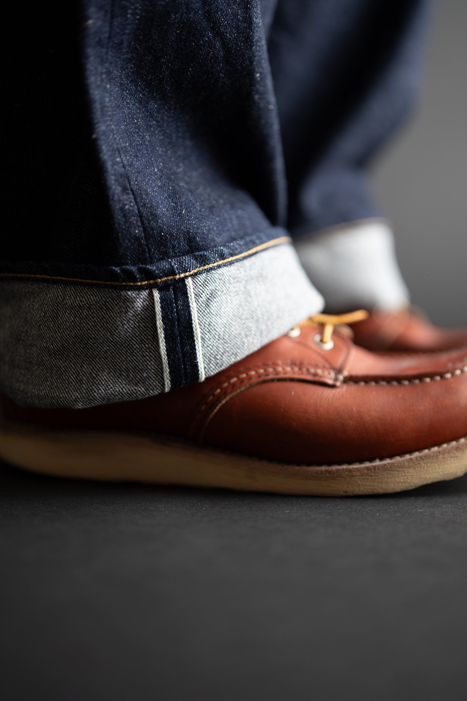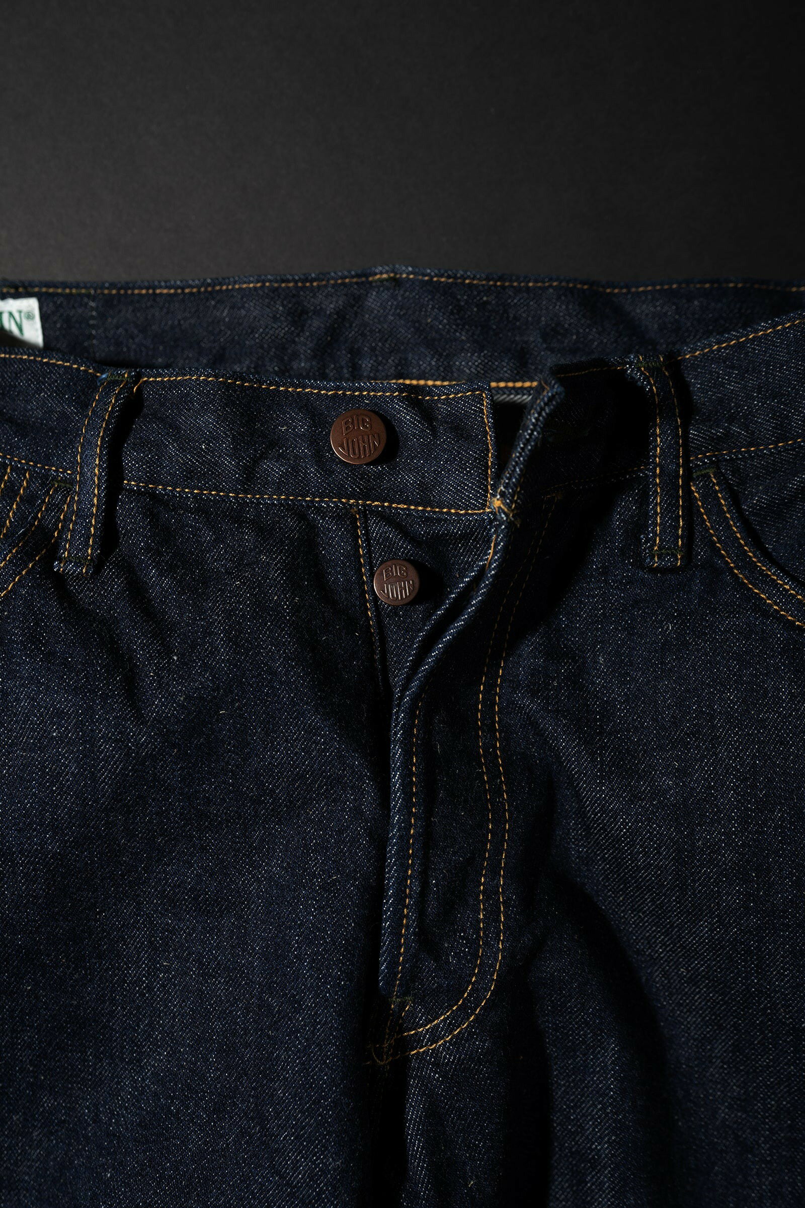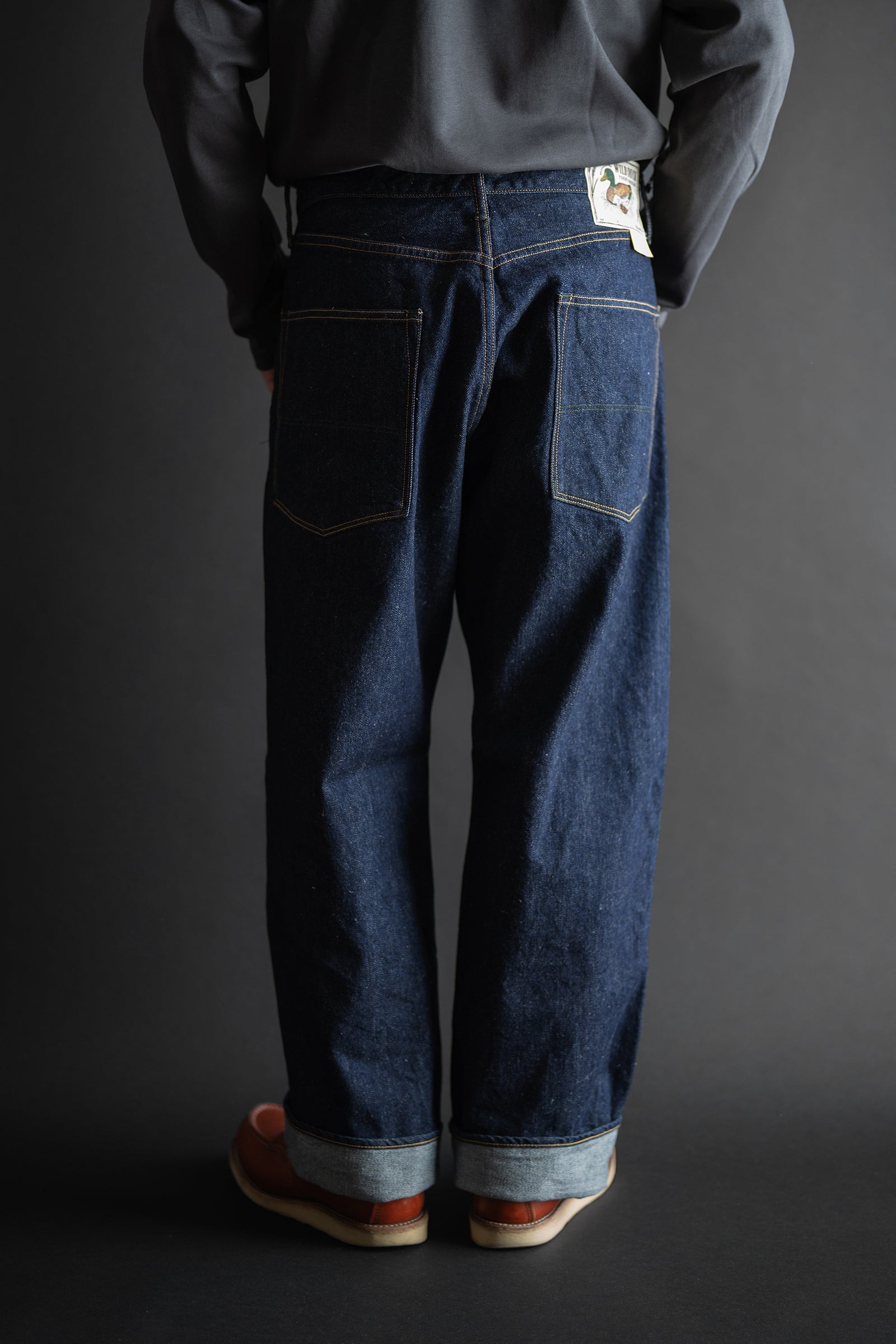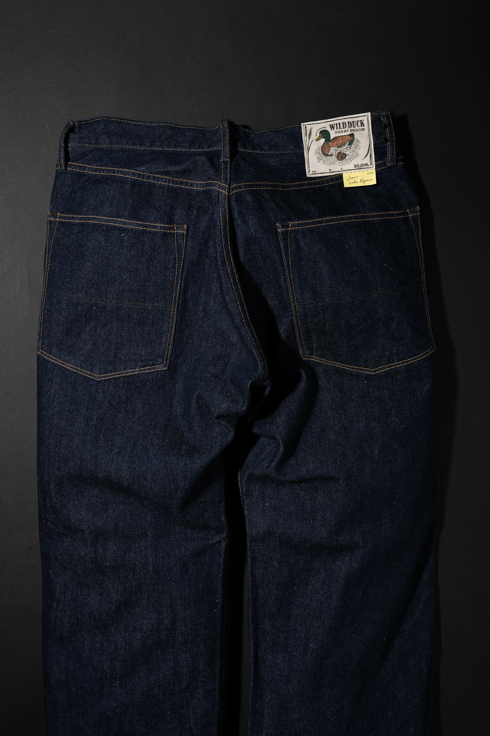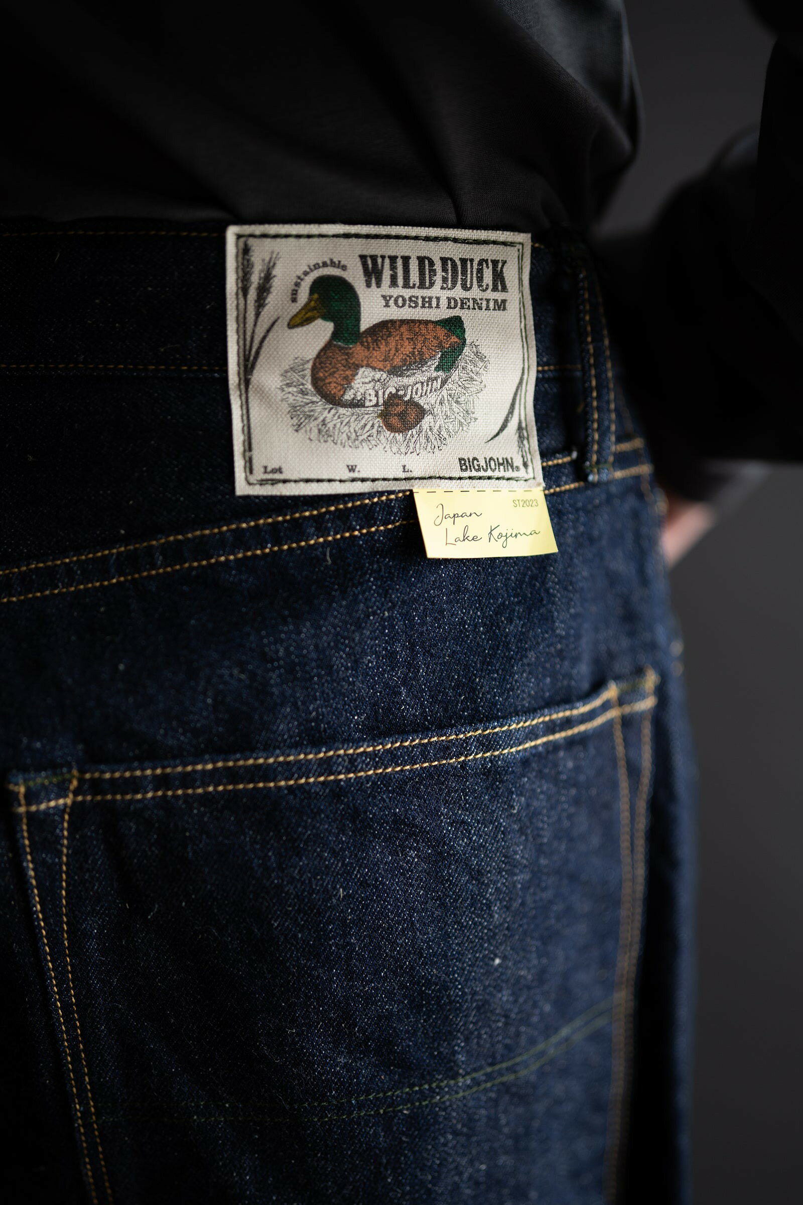 【 地球と共生するジーンズ 】葦デニム ワイルドダック ワイドストレートジーンズ ビッグジョン グリーンセルビッチデニム ヨシ BIG JOHN YOSHIDENIM WILD DUCK JEANS ( M1011RC (001) ) ダックテイル ボタンフライ インディゴセルビッチ メンズ 送料無料 アーベン