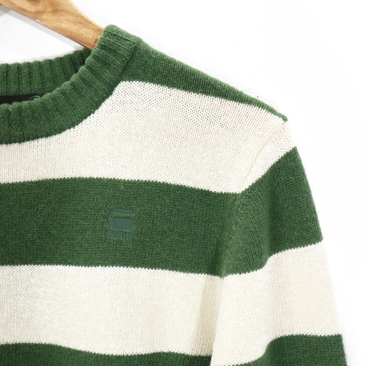 60%オフ 新品 正規品 ジースターロゥ G-Star RAW セーター XS S メンズ Sサイズ Mサイズ ニット グリーン×オフホワイト クルーネック ウール×ナイロン ボーダー柄 長袖 秋冬 D10771-A758-8887