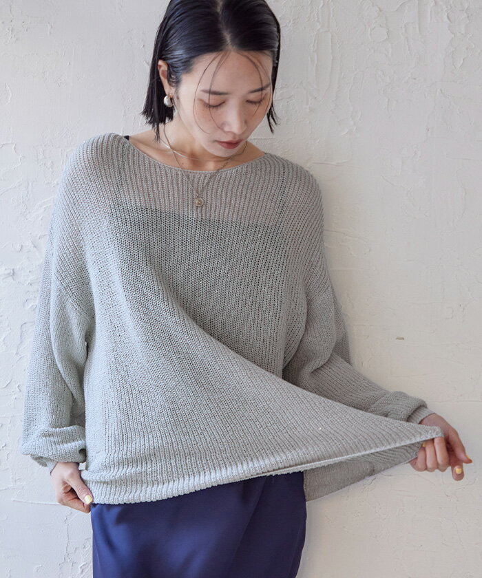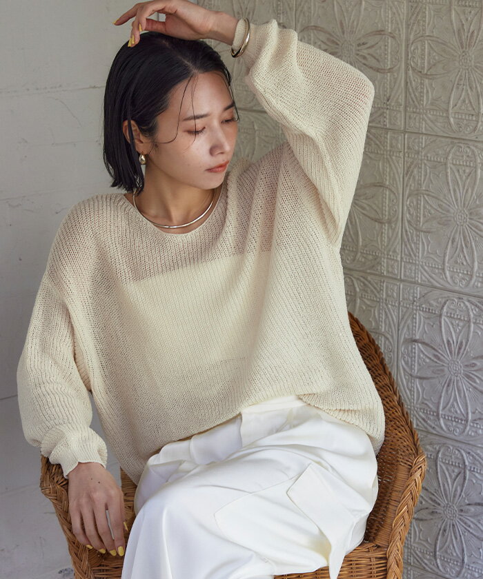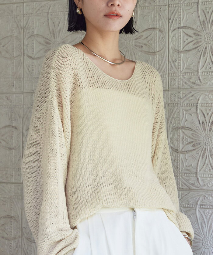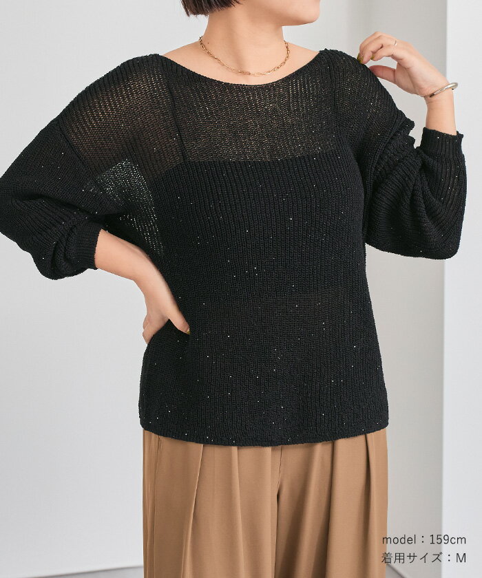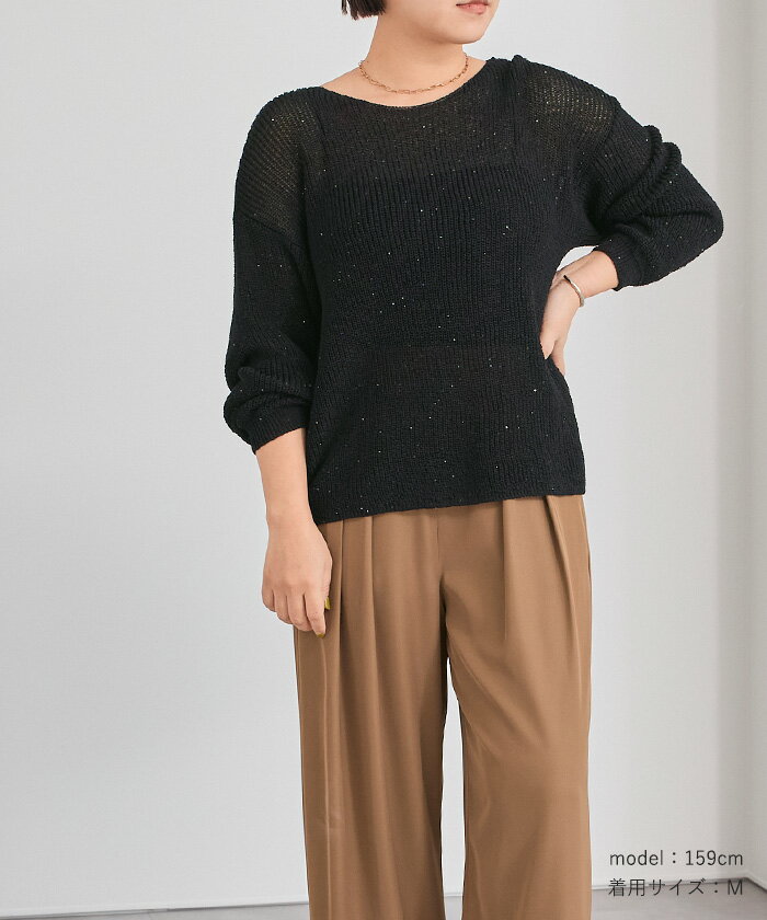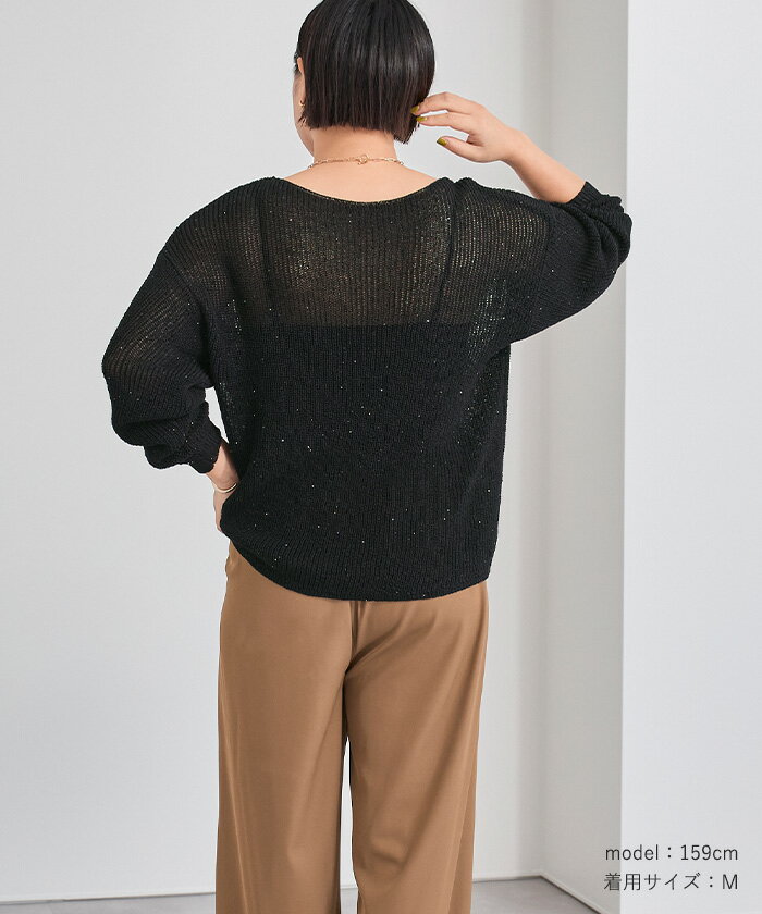 スパンコールオーバーサイズシアーニット トップス レディース ニット オーバーサイズ 長袖 シアー 透かし編み カジュアル シンプル