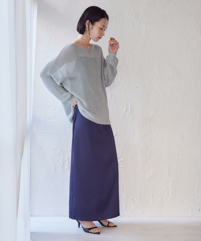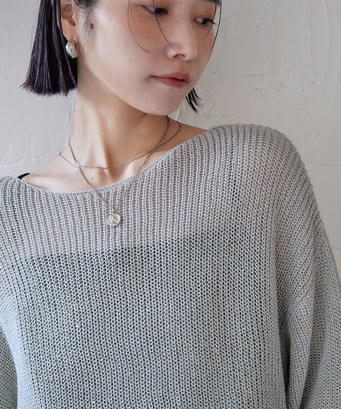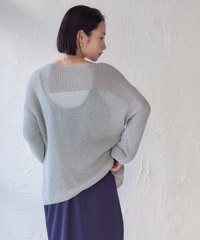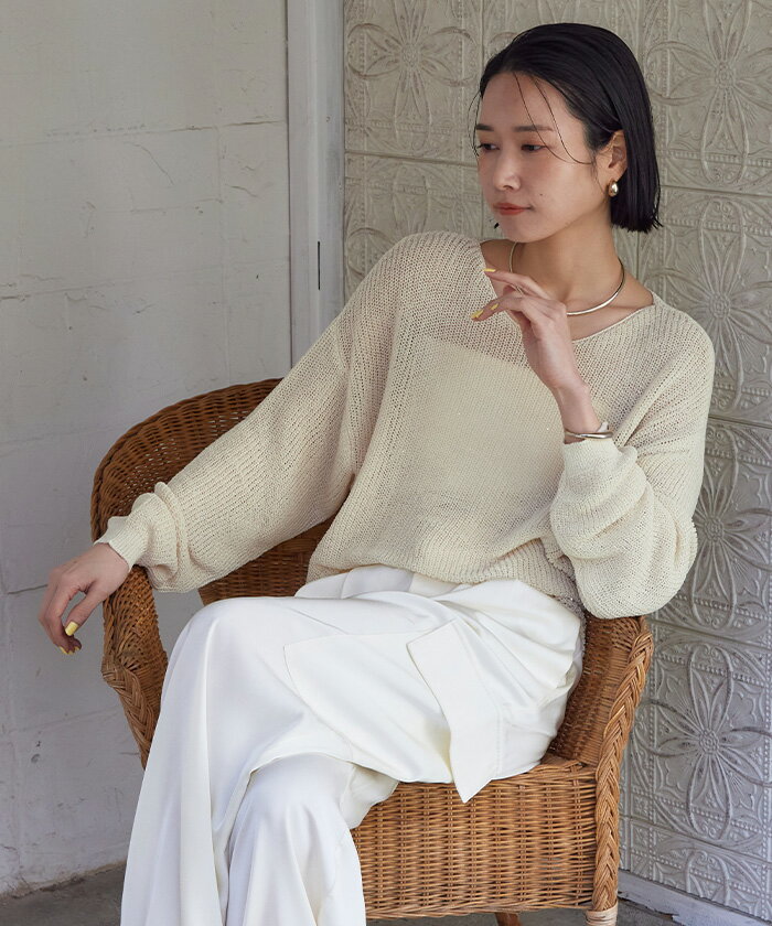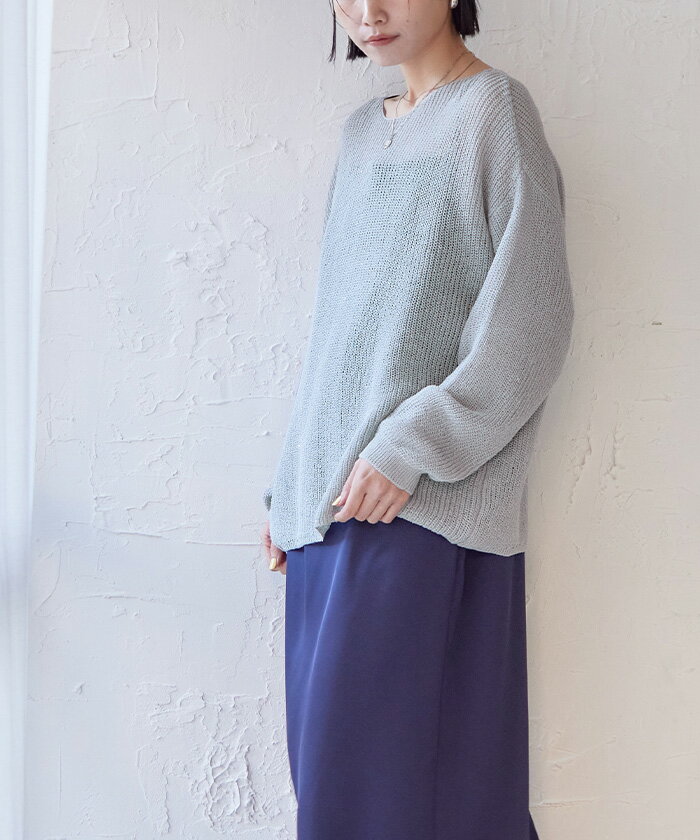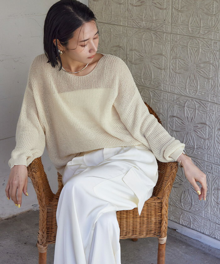 スパンコールオーバーサイズシアーニット トップス レディース ニット オーバーサイズ 長袖 シアー 透かし編み カジュアル シンプル
