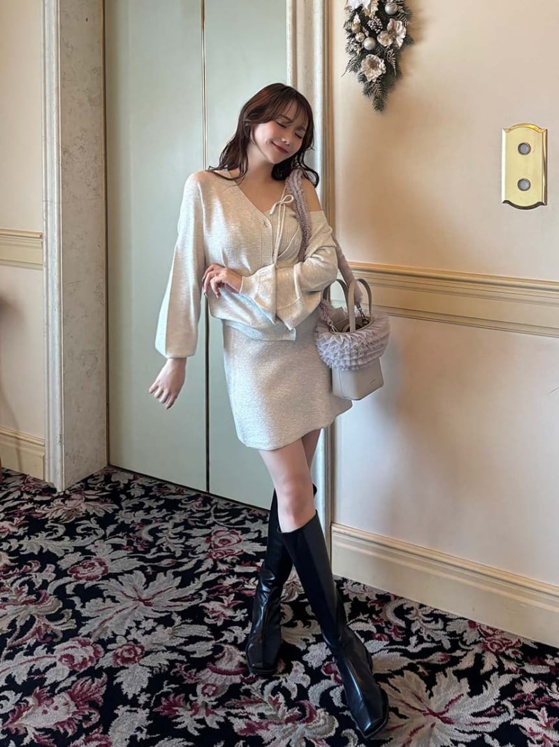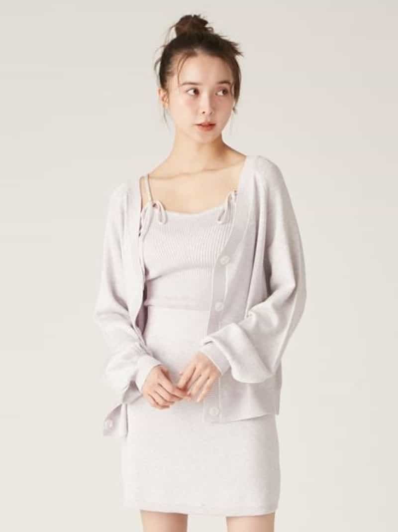 3ピースニットセットアップ LILY BROWN リリーブラウン トップス その他のトップス グレー ホワイト ピンク【送料無料】[Rakuten Fashion]
