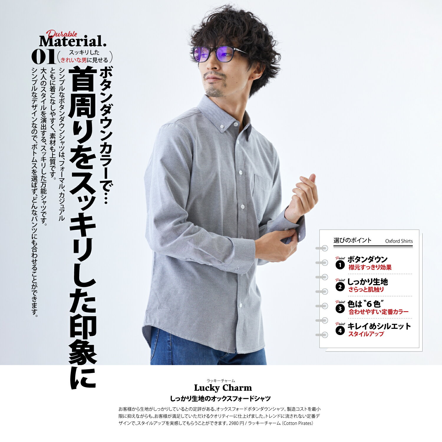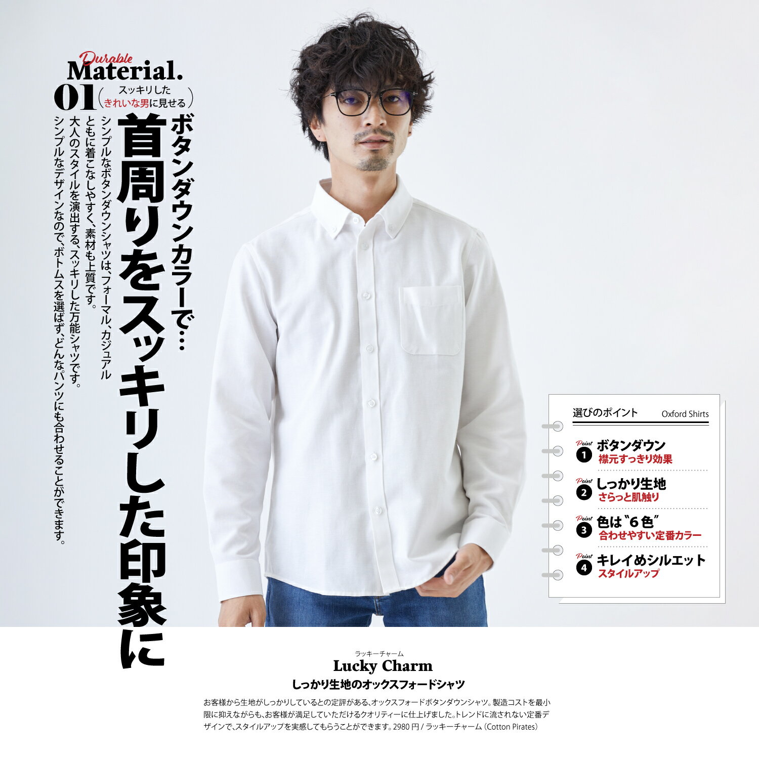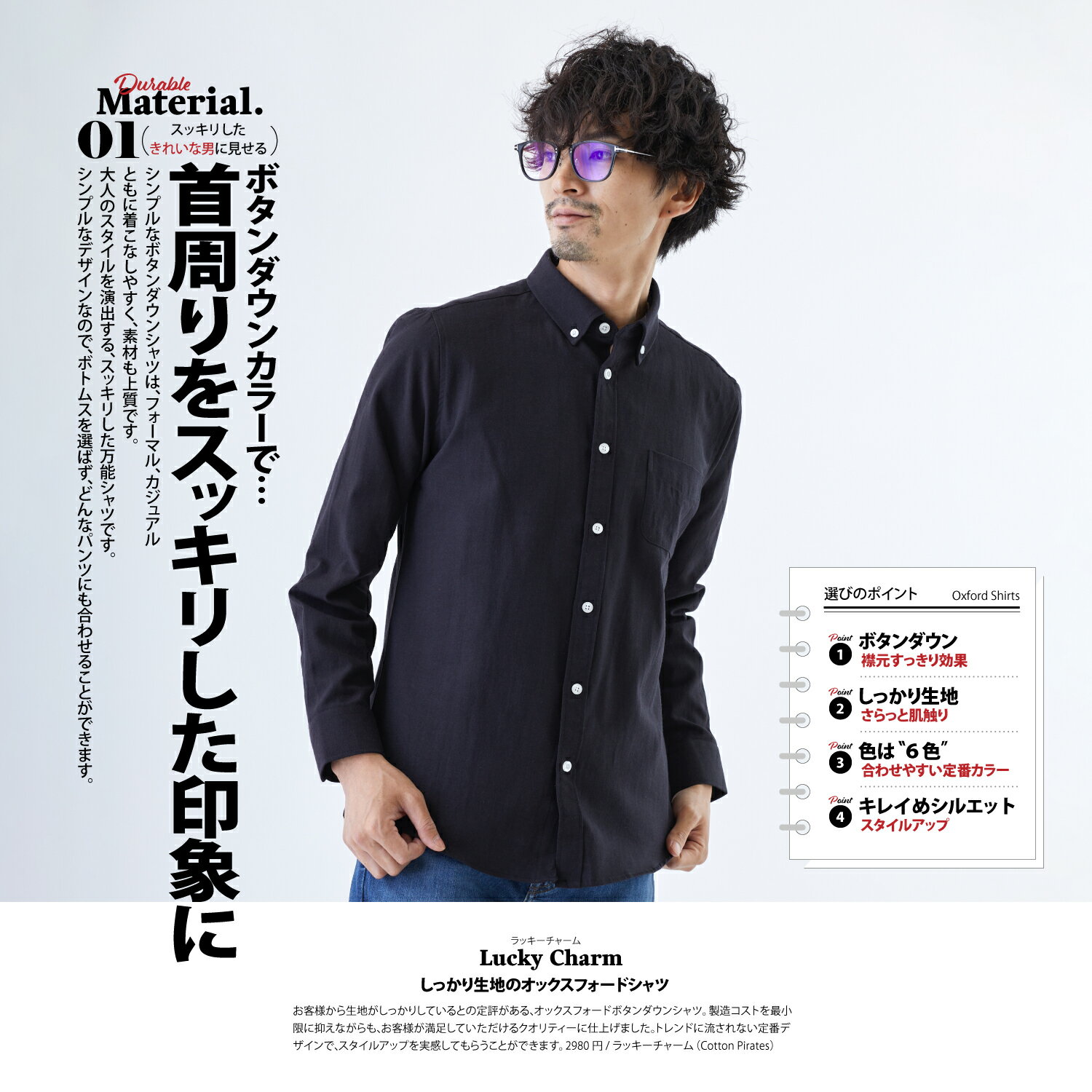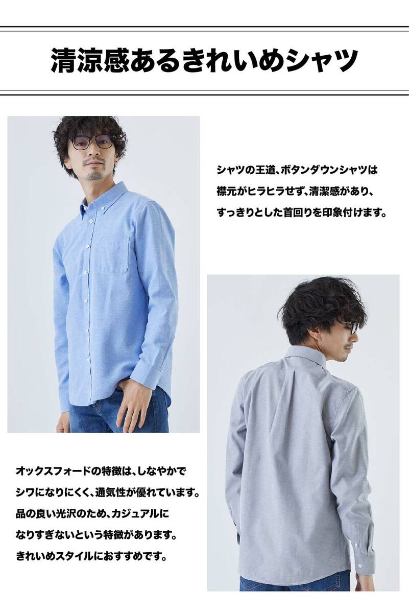 \福袋クーポン発行中!!/【 オックスフォードシャツ 】 長袖 ボタンダウンカラー マルチシーズン 通気性 速乾 メンズ カジュアル ビジネス おしゃれ スリムフィット 春 秋 冬 無地 襟付き かっこいい ワイシャツ ホワイト ブラック Lucky Charm ラッキーチャーム