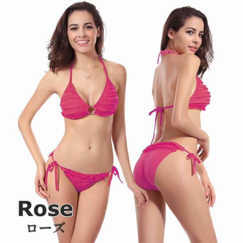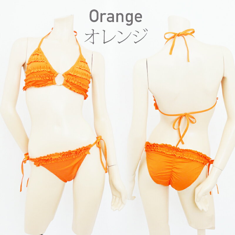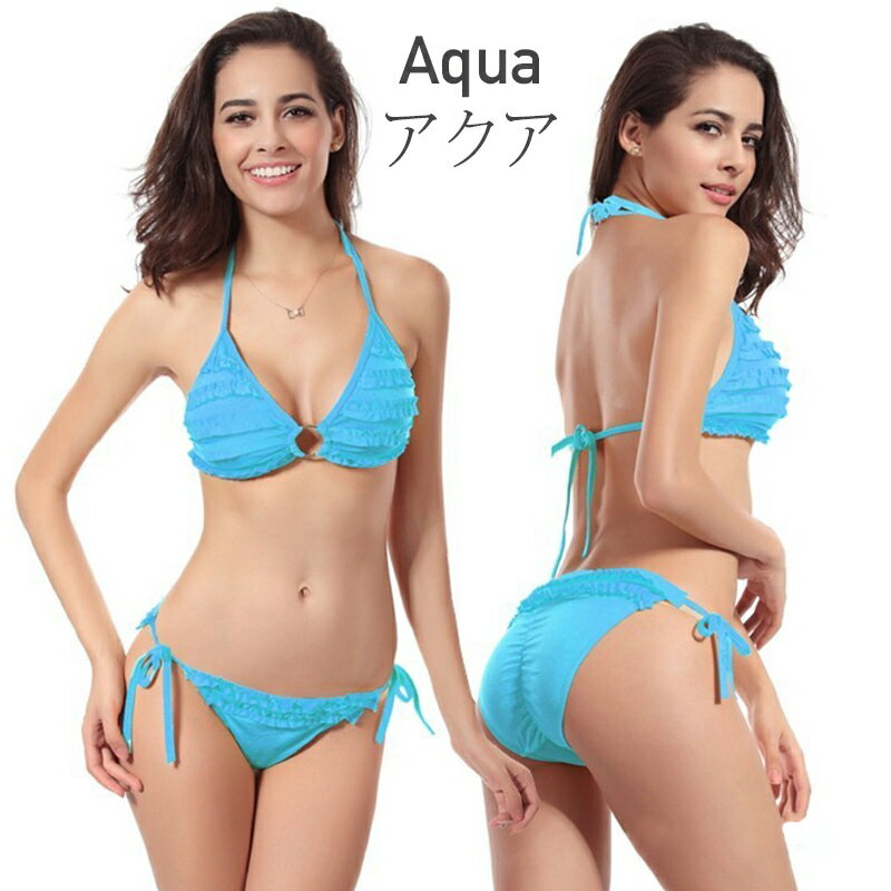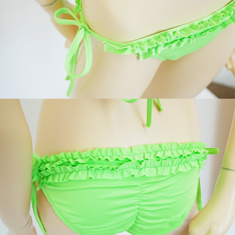 三角ビキニ レディース水着 無地 フリーサイズ 選べる10色(アクアブルー、オレンジ、ピーチ、ホワイト、ブラック、グリーン、イエロー、レッド、パープル、ローズ) 送料無料