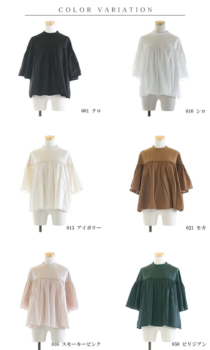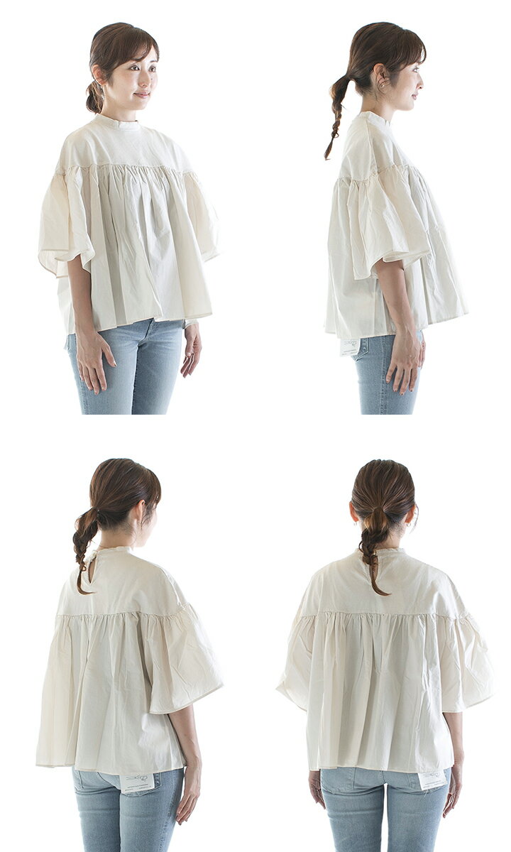 UNIVERSAL SEVEN USAコットンモックネックギャザープルオーバー US213CT004