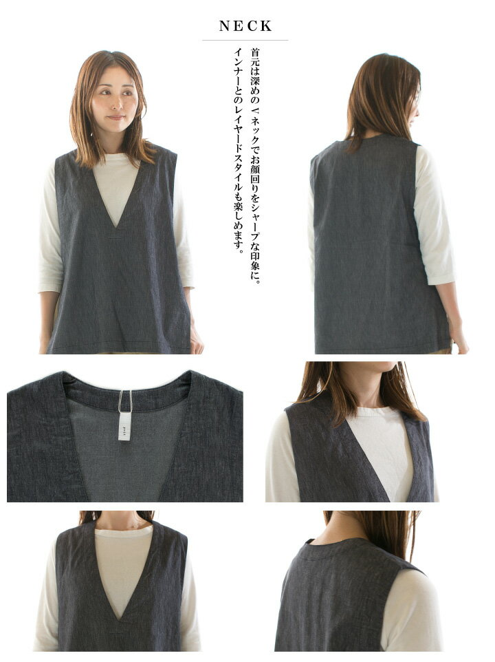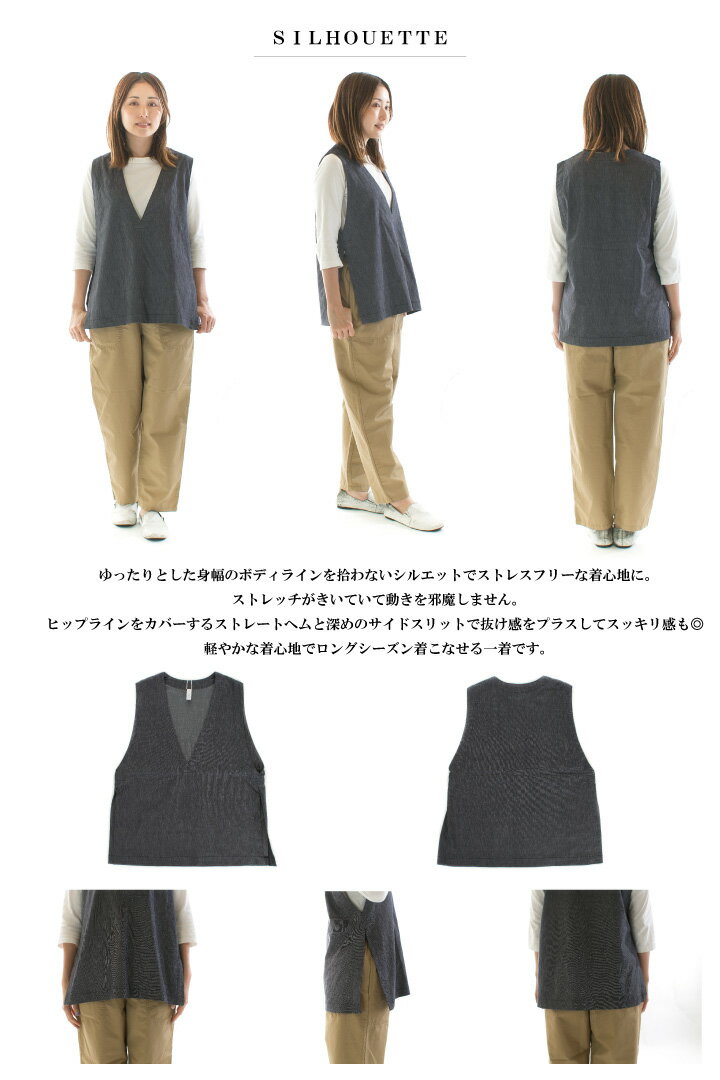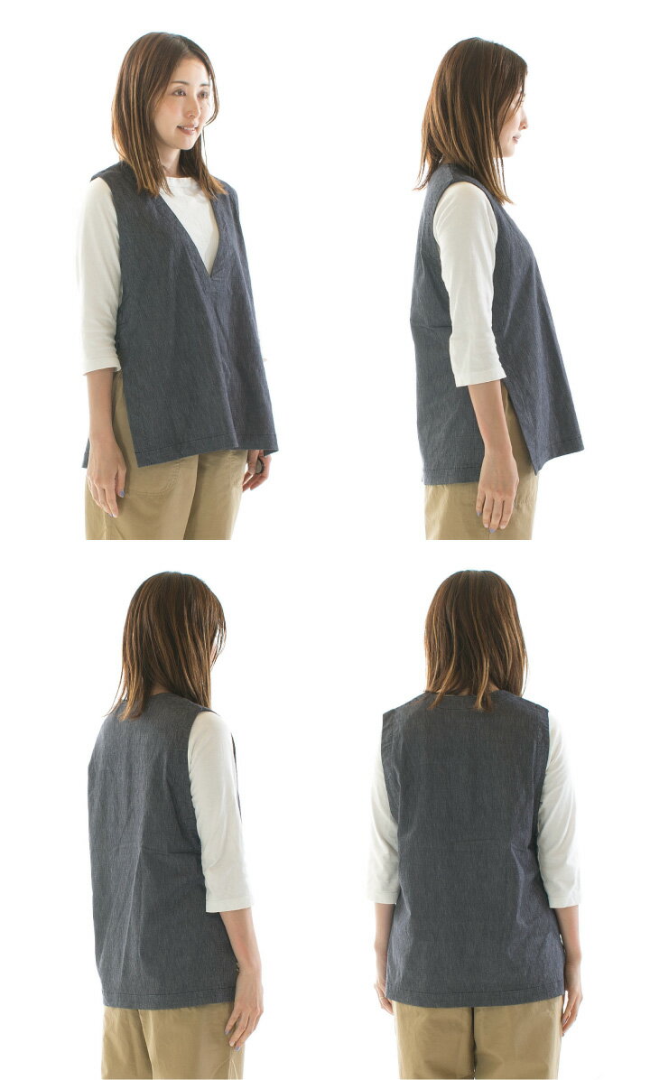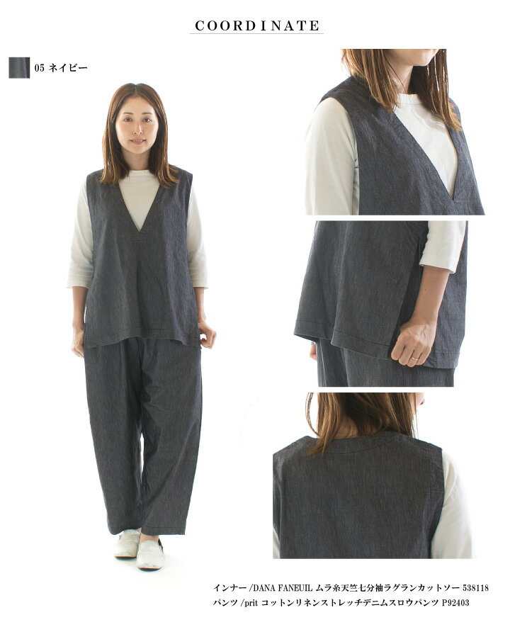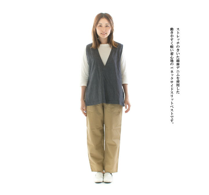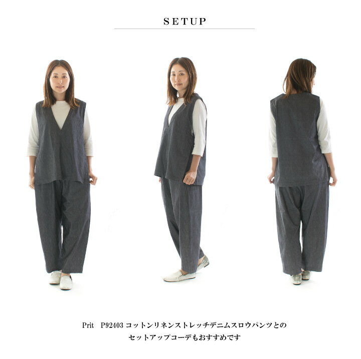【8%0FF&2点購入1,000円OFFクーポン 7/4 20:00-7/11 1:59まで】Prit プリット コットンリネンストレッチデニムVネックサイドスリットベスト P92400【2024春夏】