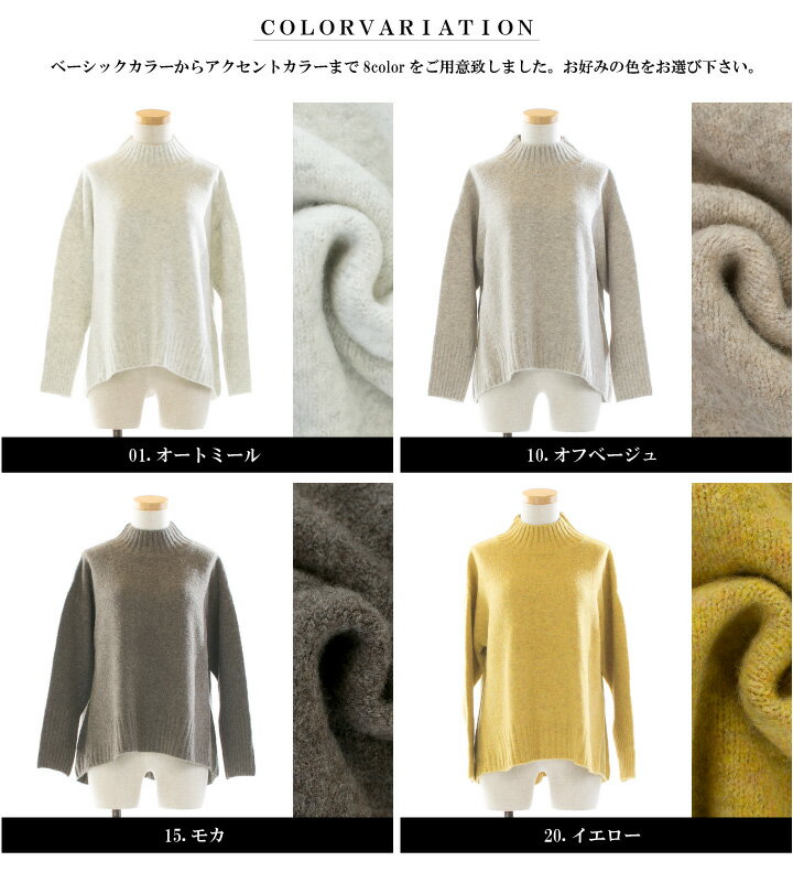 【20%OFF】maomade マオメイド NEOヤクフィールシリーズ リニューアルしましたよ!後ろ下がりのハイネックAラインプルオーバー 451120【2024秋冬】