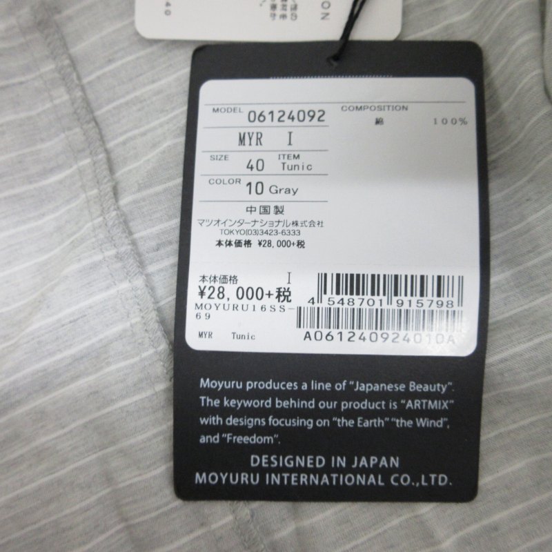 【中古】未使用品 センソユニコ Senso unico MOYURU INTERNATIONAL タグ付き チュニック カットソー ストライプ フレンチスリーブ 40 グレー 06124092 /KH ■PN ■SU レディース 【ベクトル 古着】 250331