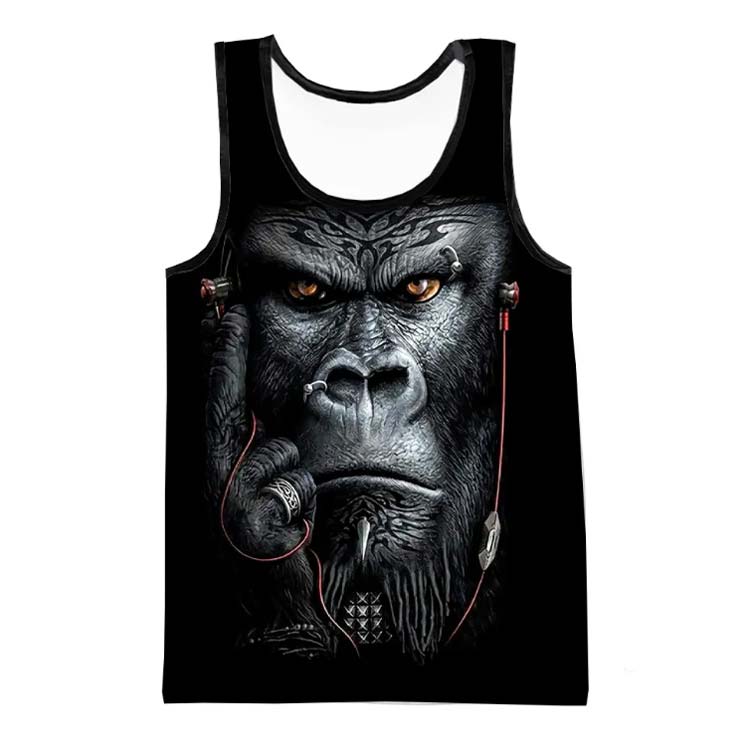 タンクトップ メンズ 男性 おしゃれ 大きいサイズ 速乾 スポーツ インナー アニマルプリント チンパンジー オラウータン ゴリラ 動物柄 ユニーク おもしろ ノースリーブ ランニング ジム 筋トレ スポーツ トレーニングシャツ tシャツ 速乾 吸汗 送料無料