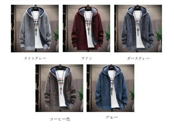メンズ カーディガン ニットセーター パーカー 防寒 ジャケット 厚手 裏起毛 フード付き アウター 秋冬 暖かい